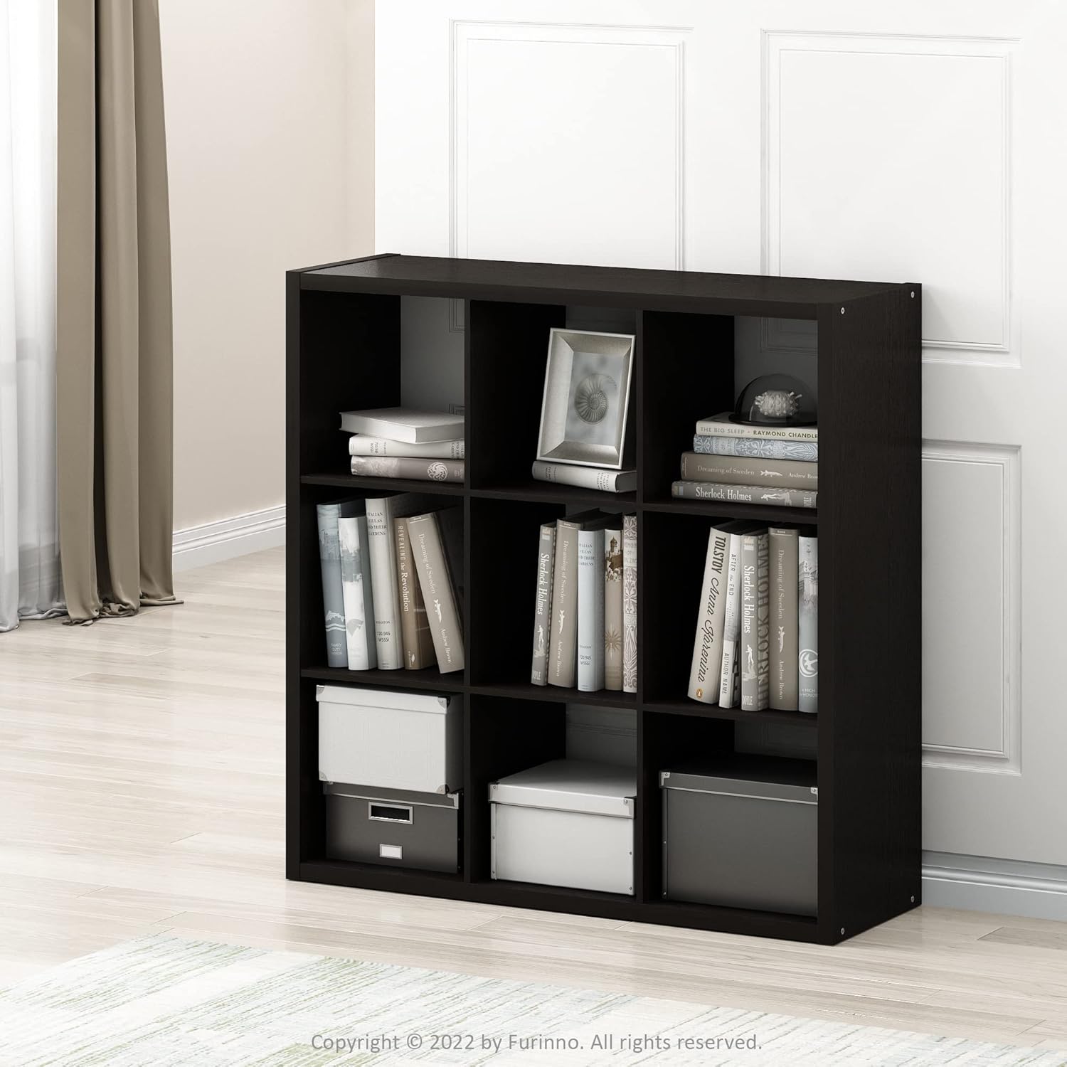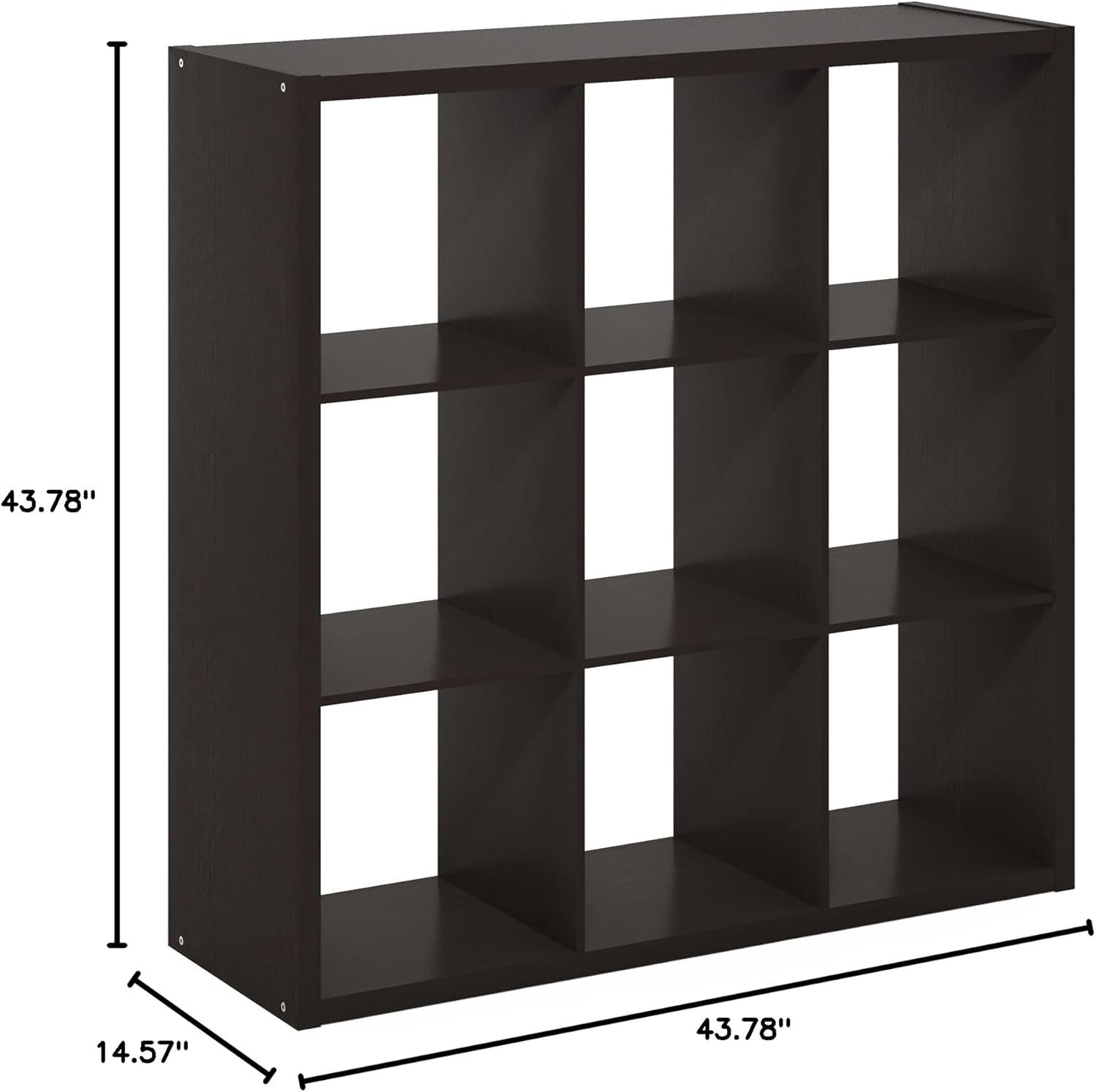 Furinno Cubicle Open Back Decorative Cube Storage Organizer, 9, Dark Oak