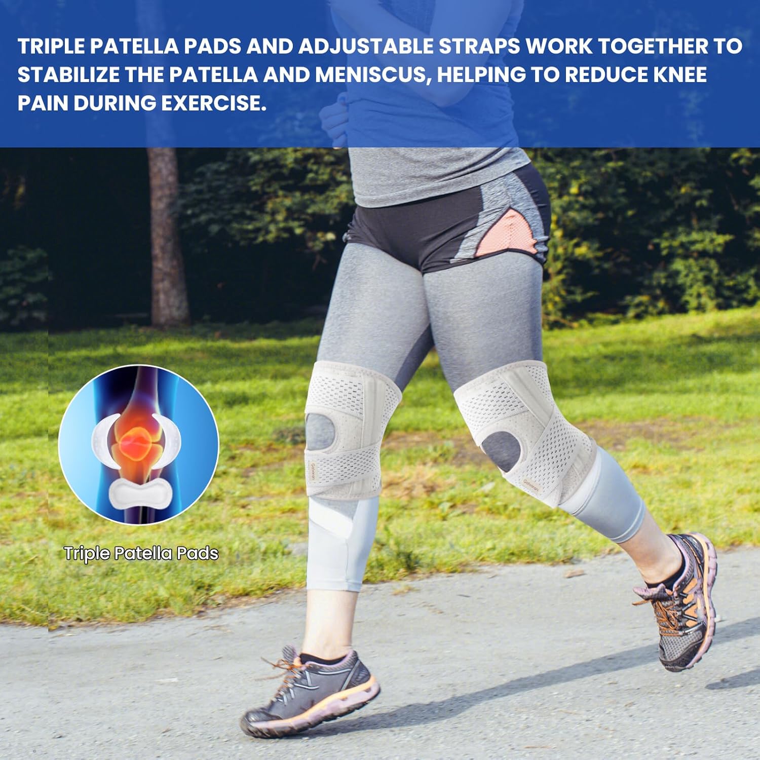 【Upgraded Dual Spring Stabilizers】The 4 memory spring stabilizers on both sides can effectively disperse the pressure on the knee joint and reduce the risk of meniscus tears, strains and sprains. It can support joints and significantly reduce the burden on the kneecap. It is used to relieve the pain of ACL, MCL, LCL, tendonitis and knee arthritis. It is the best choice for sports protection and pain Recovery.