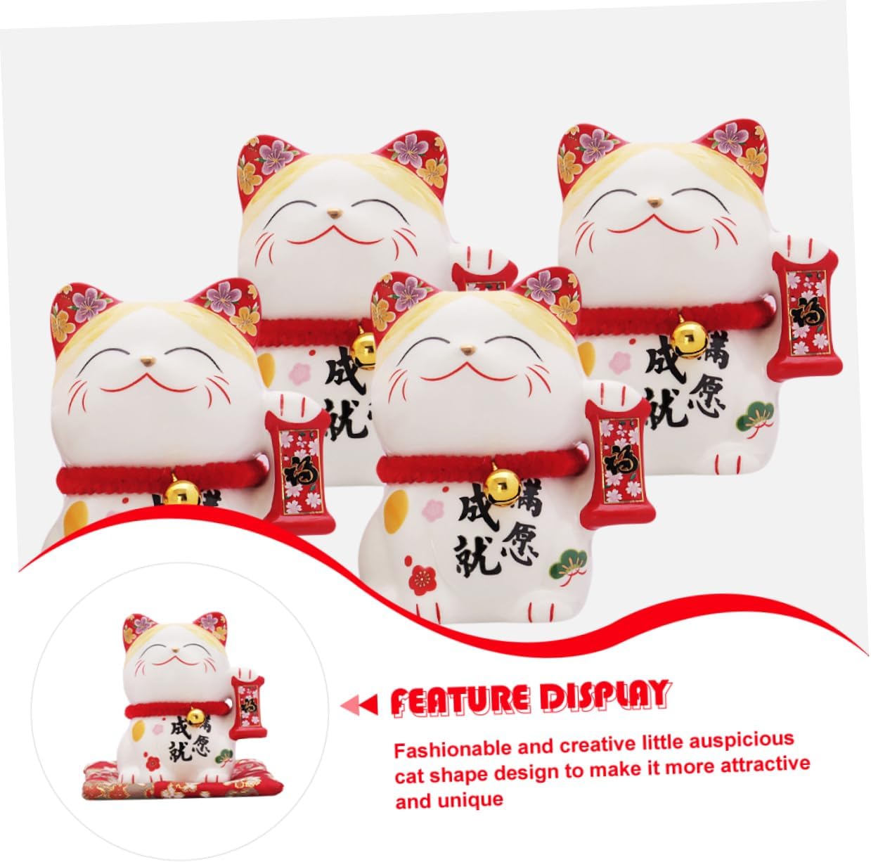 Garneck 2 Sets Ornament Feng Shui Statue Good Luck Waving Cat Ceramic Fortune Cat Figurine Japanese Figure Japanese Beckoning Cat Cartoon Cat Ceramics Basin