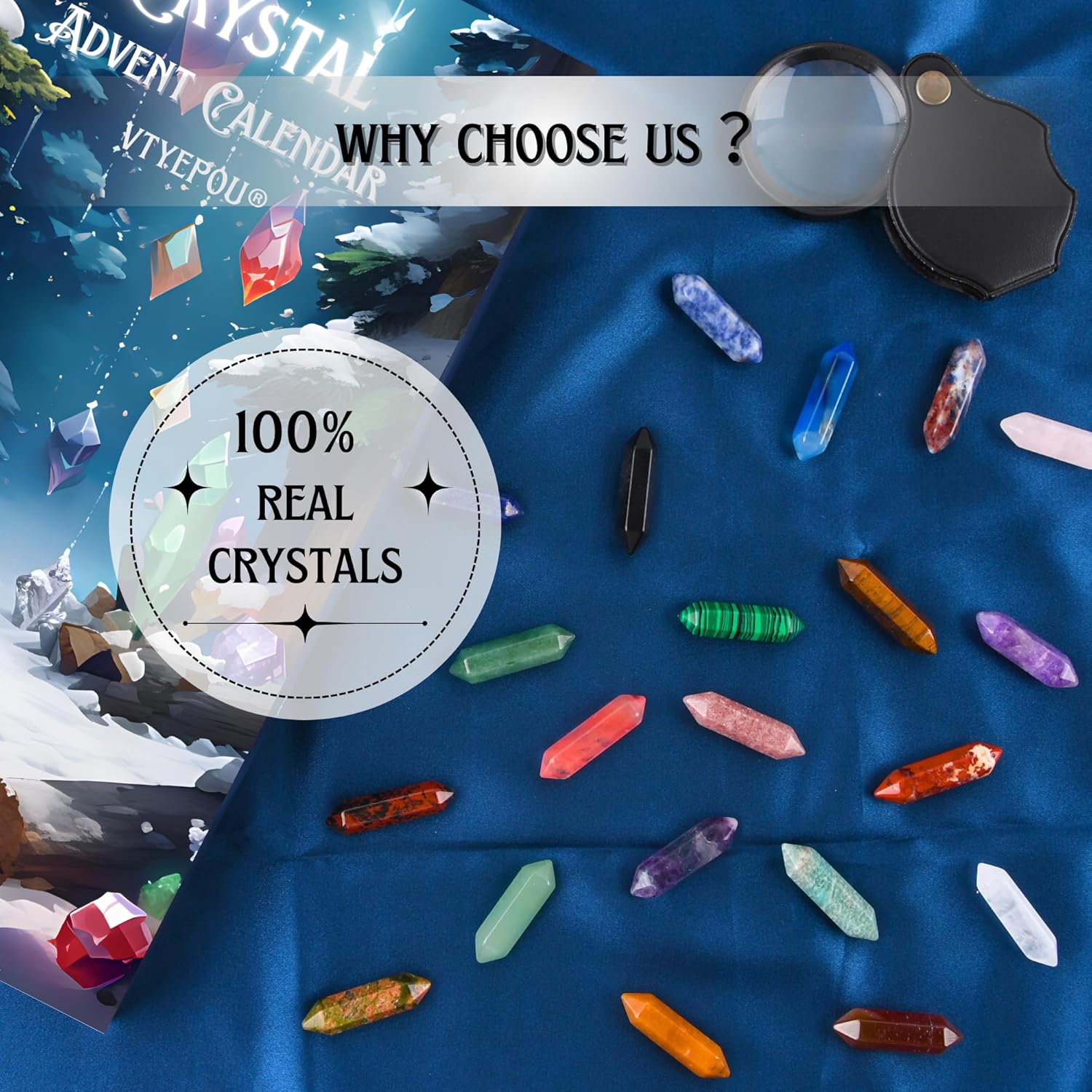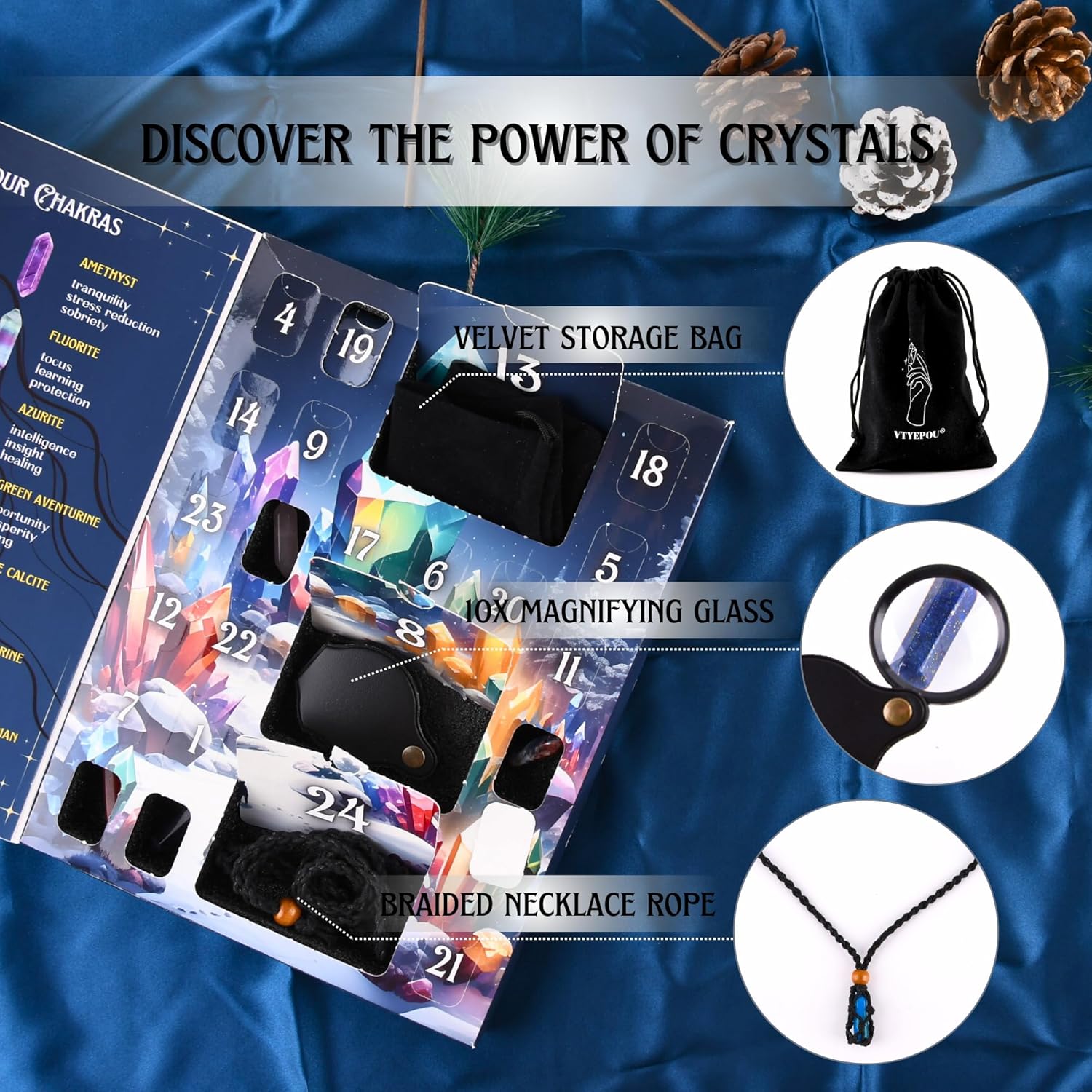 Gemstone Advent Calendar for Crystal Lovers – Healing Crystals Advent Calendar 2024 for Teen Girls Women 24 Days Christmas Countdown – Natural Stones Gift Set for Chakra Meditation Witchcraft