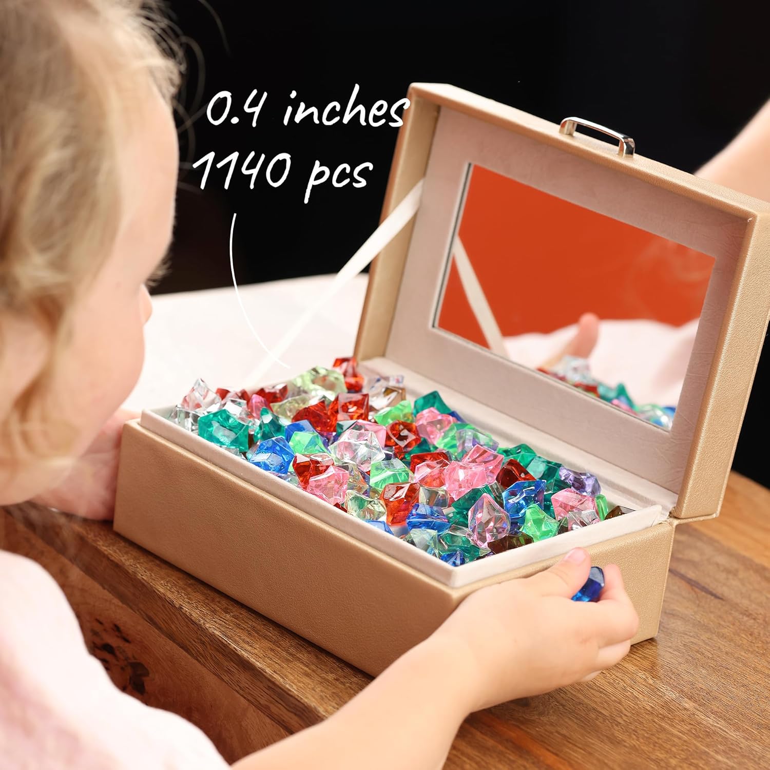 Gemstones and Crystals Fake Diamonds – Pack of 1140pcs(1.32lb) Vase Filler – Jewels for Crafts – Fish Tank Rocks – Sensory Bin Filler Gems for Crafting – Fake Ice Aquarium Stones – Multicolored
