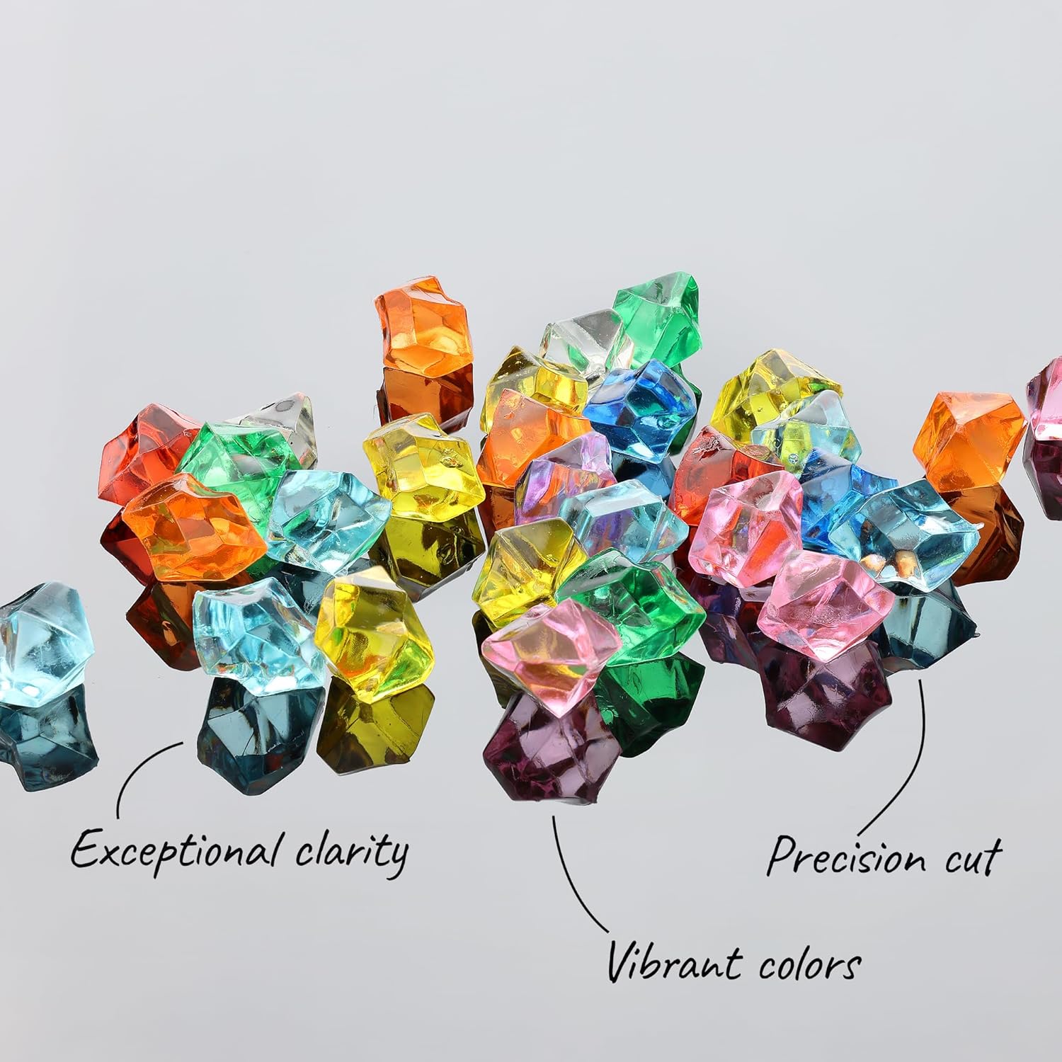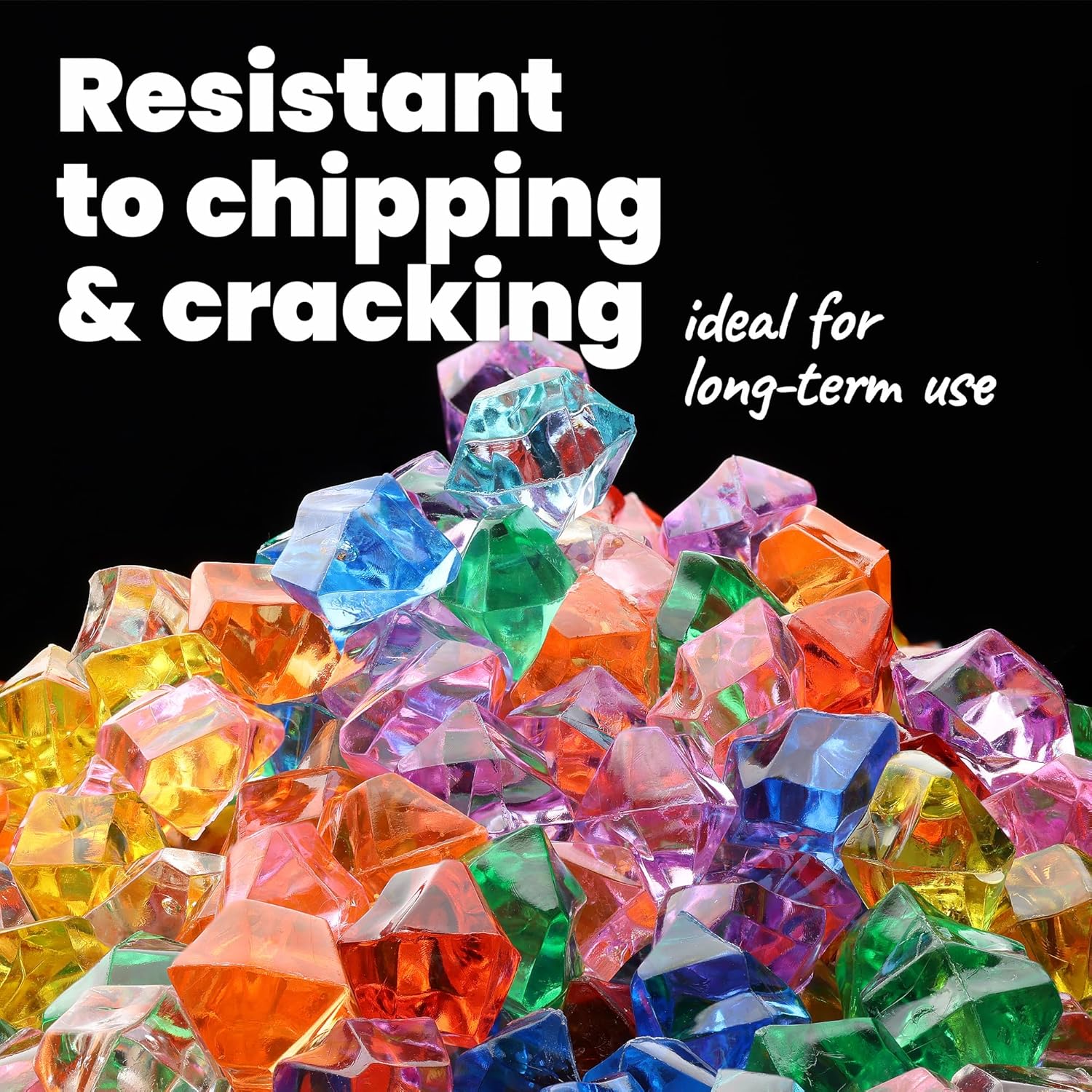 Quantity and size – 1140 pcs plastic gems bulk, 0.8 inches (20 mm), medium size. All our multicolor fake ice cubes are meticulously polished, guaranteeing smooth edges with no roughness