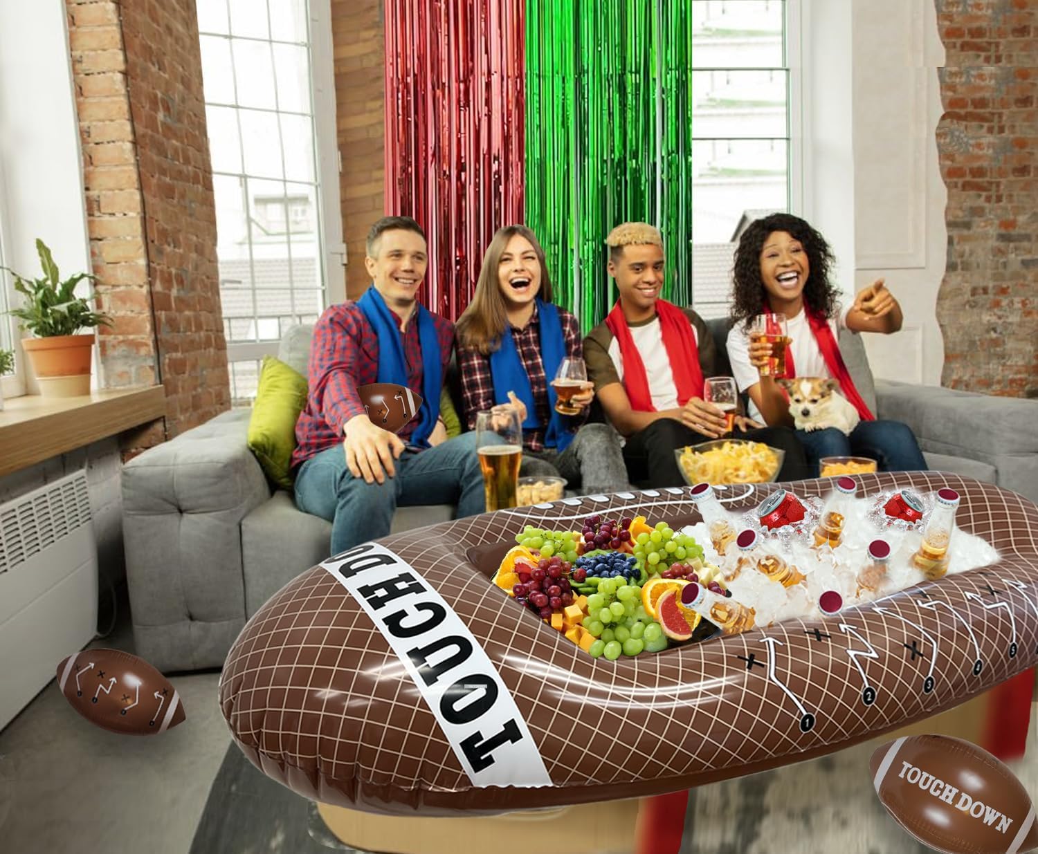 GIFTEXPRESS 1PC Inflatable Football Beverage Cooler for Football Party Decoration, Floating Ice Serving Bar for Sports Party, Pool Party, Picnic Supplies with Repair Kit(Football)