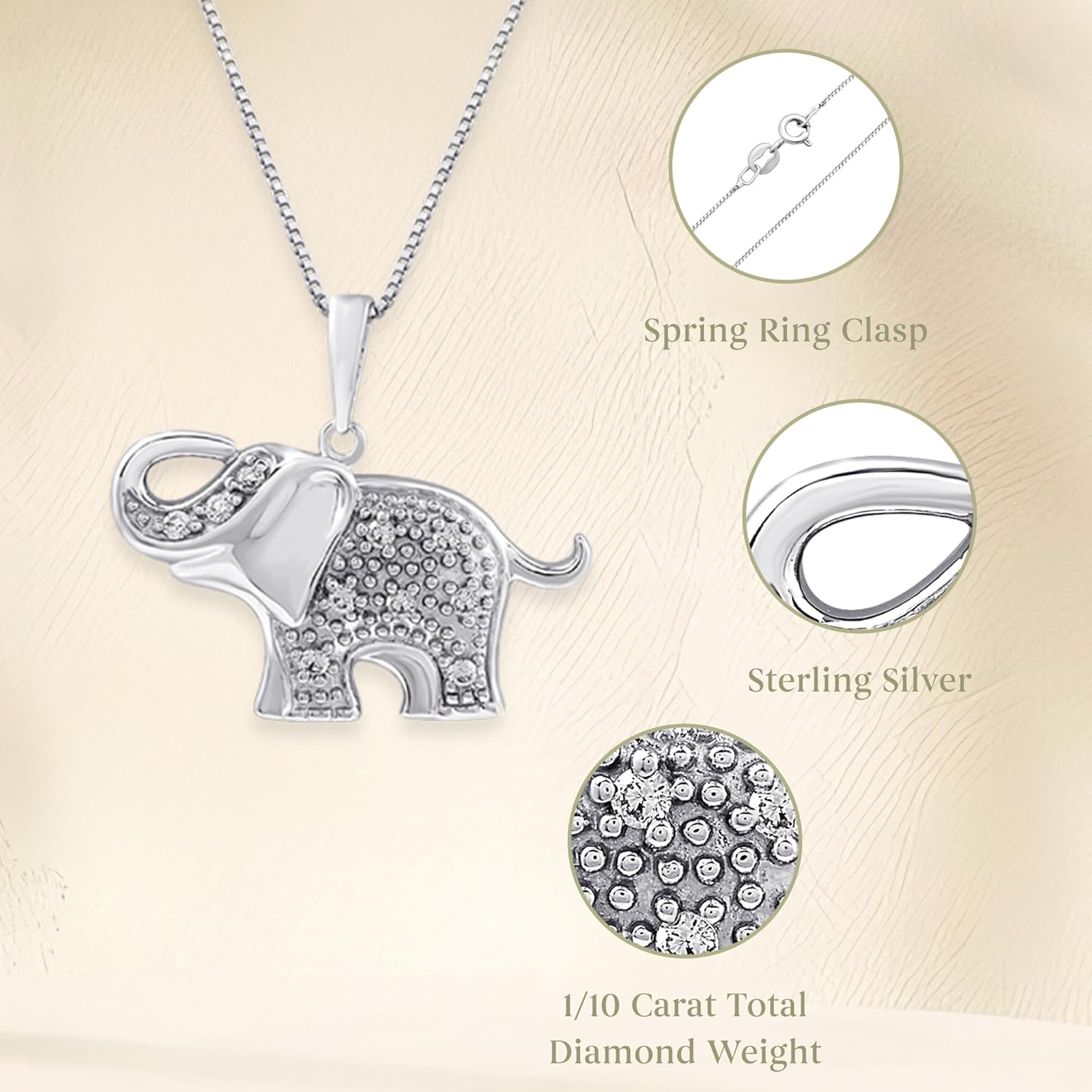 GILDED Sterling Silver Necklace with Natural Round-Cut Diamond and Animal Shaped Pendant, 925 Sterling Silver Necklace with Natural Diamond Pendant, 18-inch White Silver Chain, 1/4 Carat Total Weight Diamonds, Elegant Gift Box Included