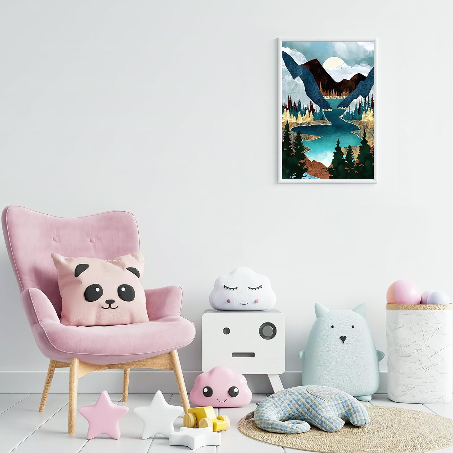 Ginkko Paint by Numbers Kit for Adults Beginner & Kids Ages 8-12 with Wooden Frame Easy Acrylic on Canvas 9×12 inch with Paints and Brushes, River(Include Framed)