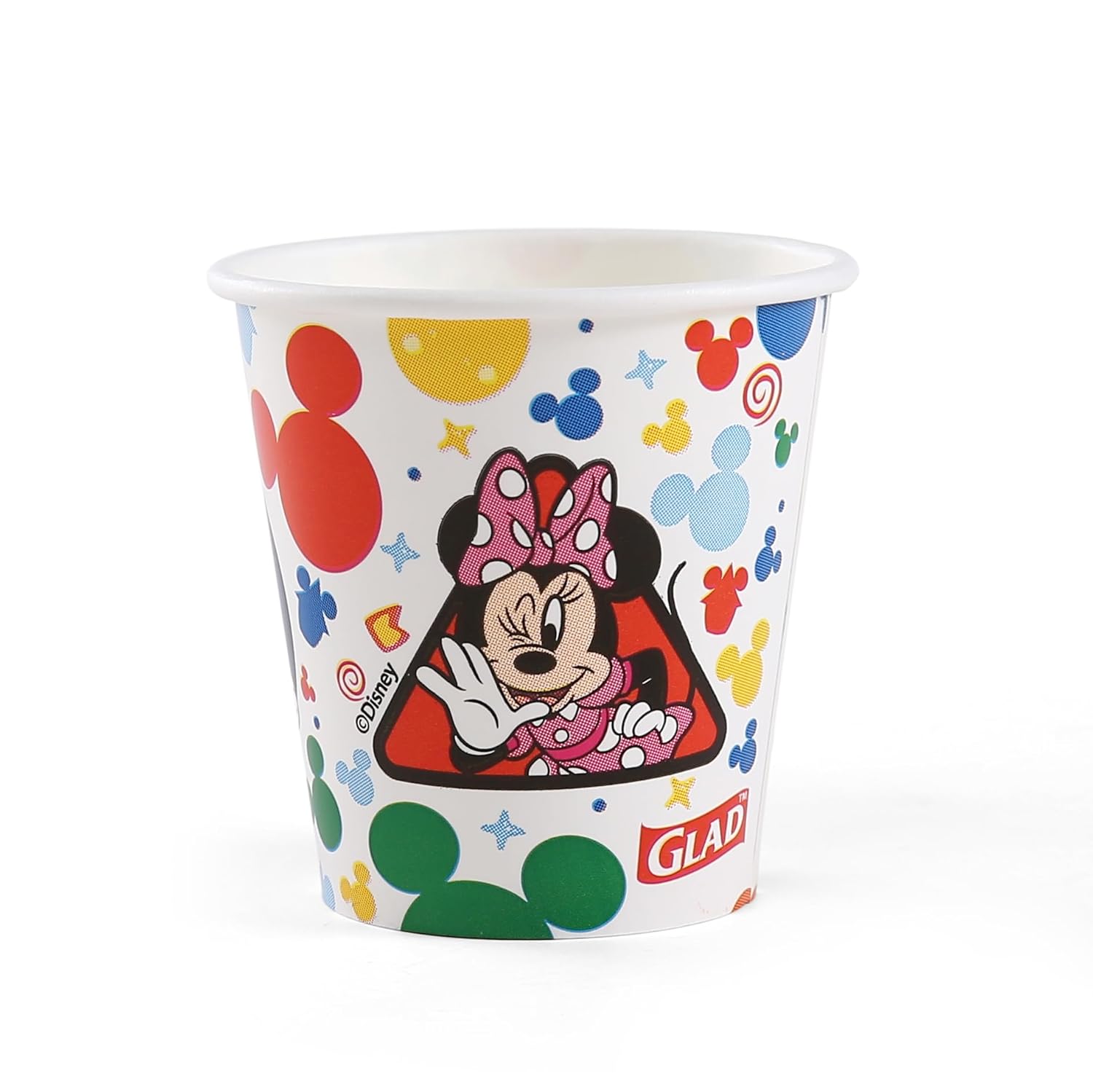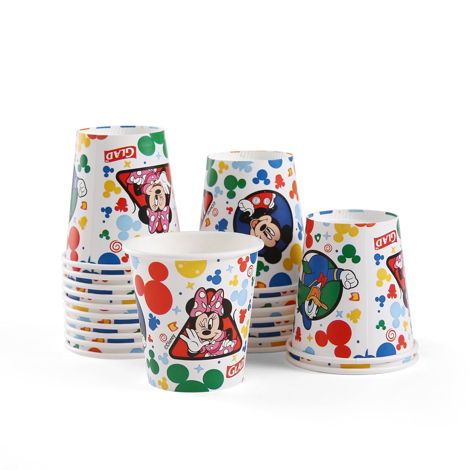 Glad for Kids believes in bringing a little fun to your everyday routine! So, when it’s time to rinse and swish, why not invite your family’s favorite characters and colors to the sink? Disney Mickey and Friends Mini Paper Bathroom Cups are the perfect kid-friendly size, measuring just 2.25 inches tall and holding 3 ounces of fluid. And because they’re from Glad for Kids, parents can trust that they are soak-proof and sturdy. This pack contains 20 mini paper cups adorned with vibrant designs of Mickey Mouse, Minnie Mouse, Donald Duck, Daisy, Goofy, and Pluto, bringing a touch of fun to every rinse. These bathroom paper cups are specifically designed for rinsing the mouth after brushing teeth or using mouthwash. Made for daily use, they’re disposable for effortless cleanup, ensuring a hygienic experience every time.Not just for daily use, these mouth rinse cups are also perfect for parties, or any occasion where a sprinkle of fun is desired.Make oral hygiene fun and captivating for your child with Disney Mickey and Friends Mouth Rinse Cups. Whether for daily use or special occasions, these mini paper cups add charm and convenience to every rinse.