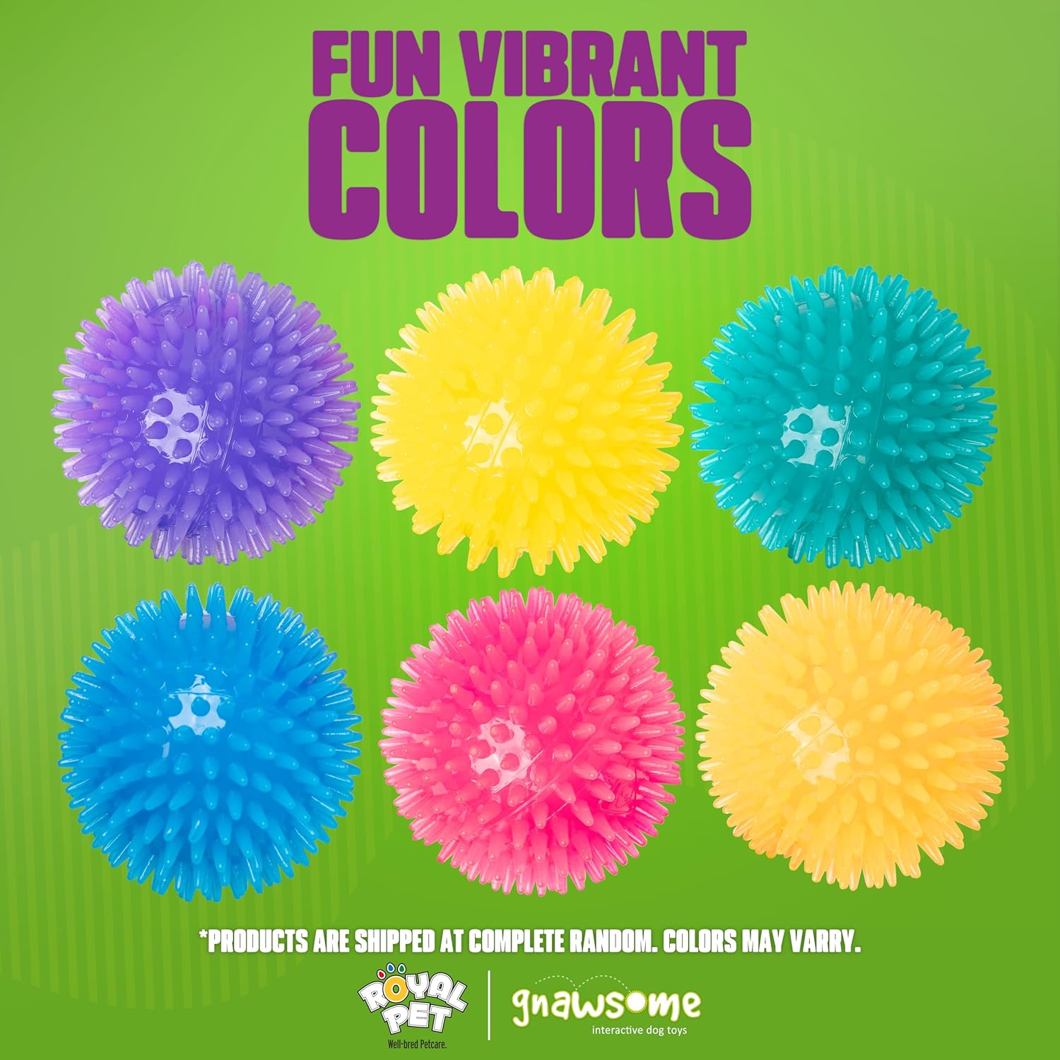 Gnawsome™ 3.5” Spiky Squeak & Light Ball Dog Toy – Medium, Cleans Teeth and Promotes Good Dental and Gum Health for Your Pet, Colors will vary, 3.5″