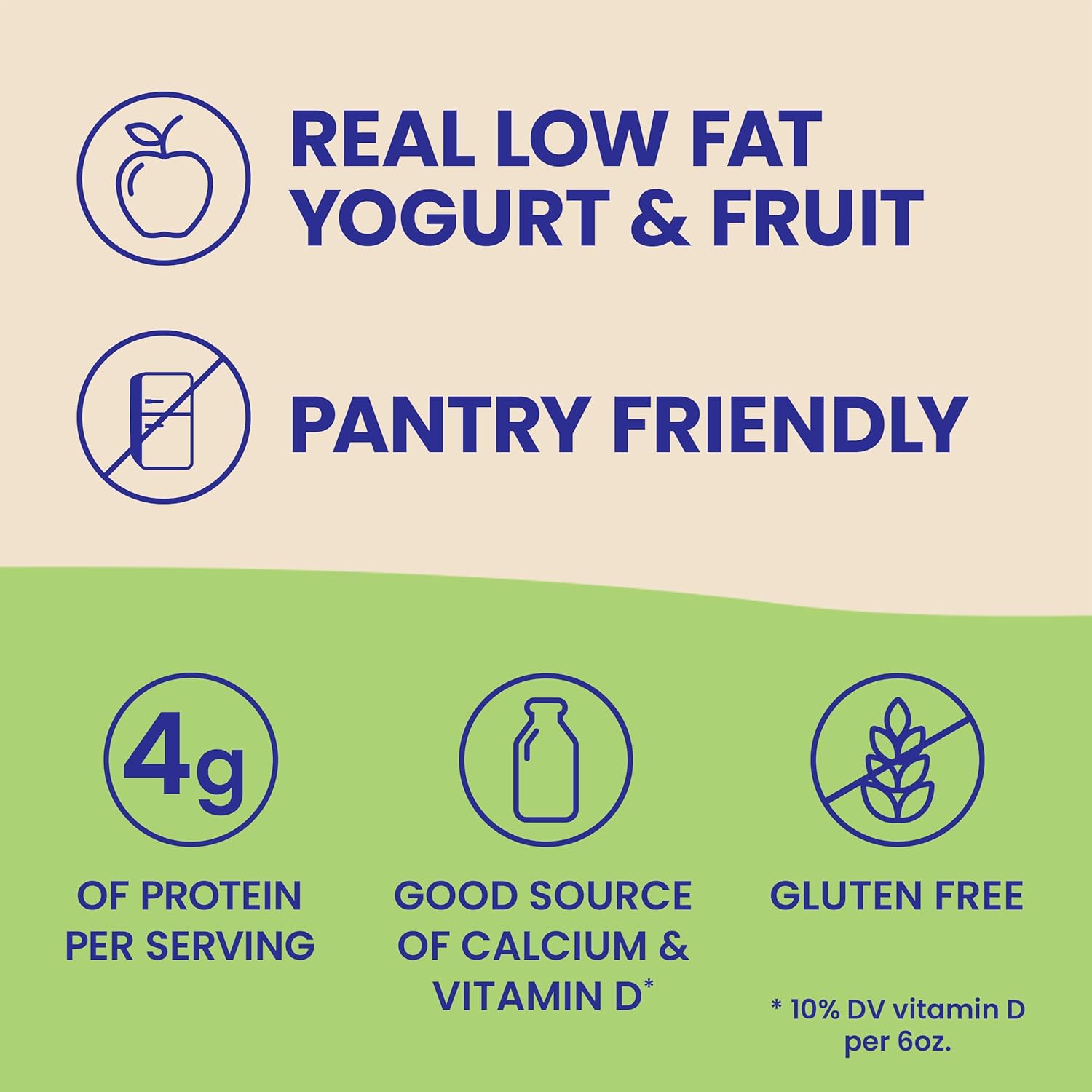 Made from real yogurt and fruit, these kids yogurt pouches contain 4g of protein per pouch/serving, no preservatives and are a good source of calcium and Vitamin D** (**At Least 10% Of The Daily Value Per 6 Oz.)