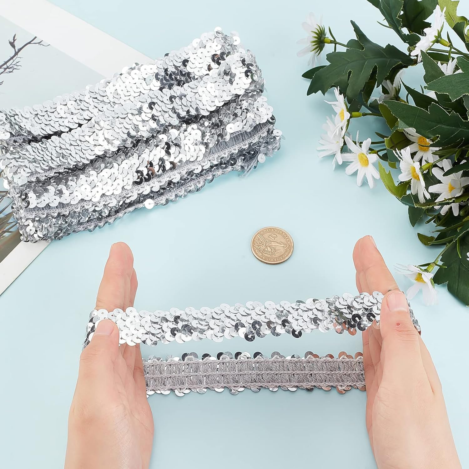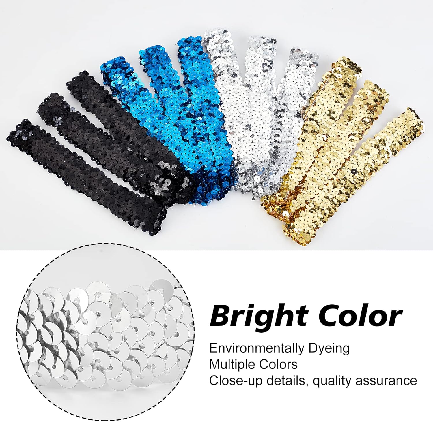 GORGECRAFT 12PCS Sequin Headband Elastic Glow Stretch Sparkle Glitter Fashion Adjustable Hair Band Accessories Pack Set for Girls Women Teens Sports Dance Party Teams Crafts(Sliver)