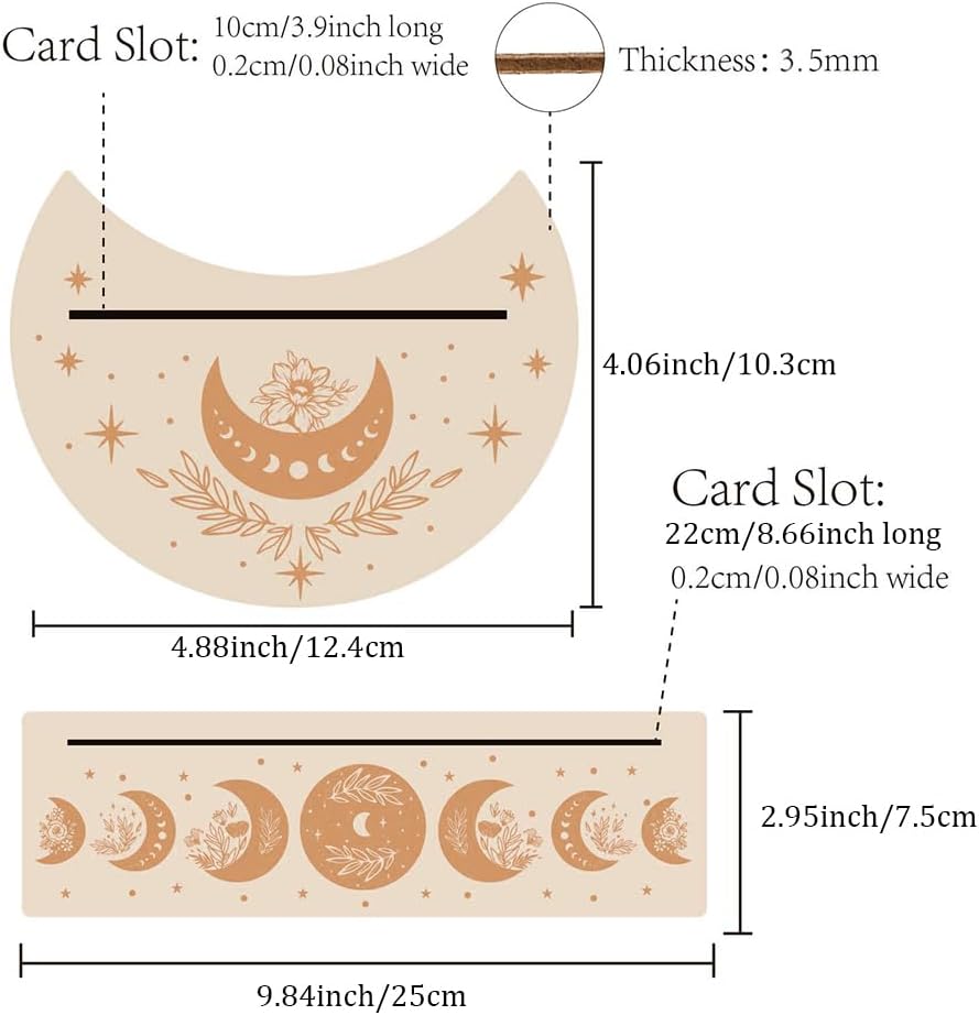 ❤[TAROT CARD HOLDER] – Include 2pcs tarot card holders, moon shape about 5.1x 3.9 inch, the card slot is 3.9×0.08 inch/10×0.2cm; rectangle shape about 10x 3 inch, the card slot is 7.87×0.08 inch/20×0.2cm, can hold 1-3 tarot card.