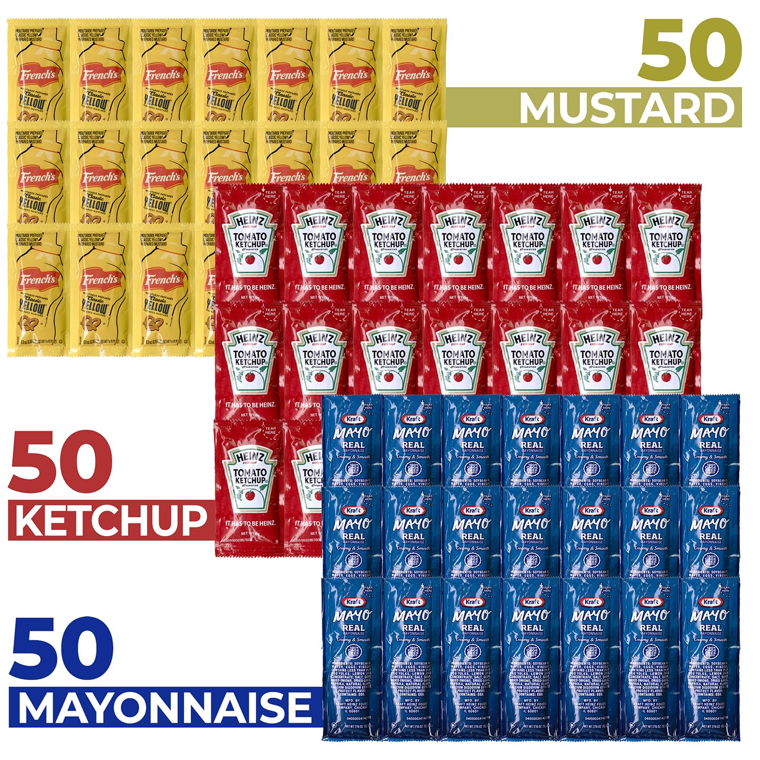 50 Heinz Ketchup: When it comes to the king of the catsup game one name reigns supreme. Heinz ketchup packets are the number one choice for ketchup travel condiments. Get 50 Catsup packets in this variety pack.