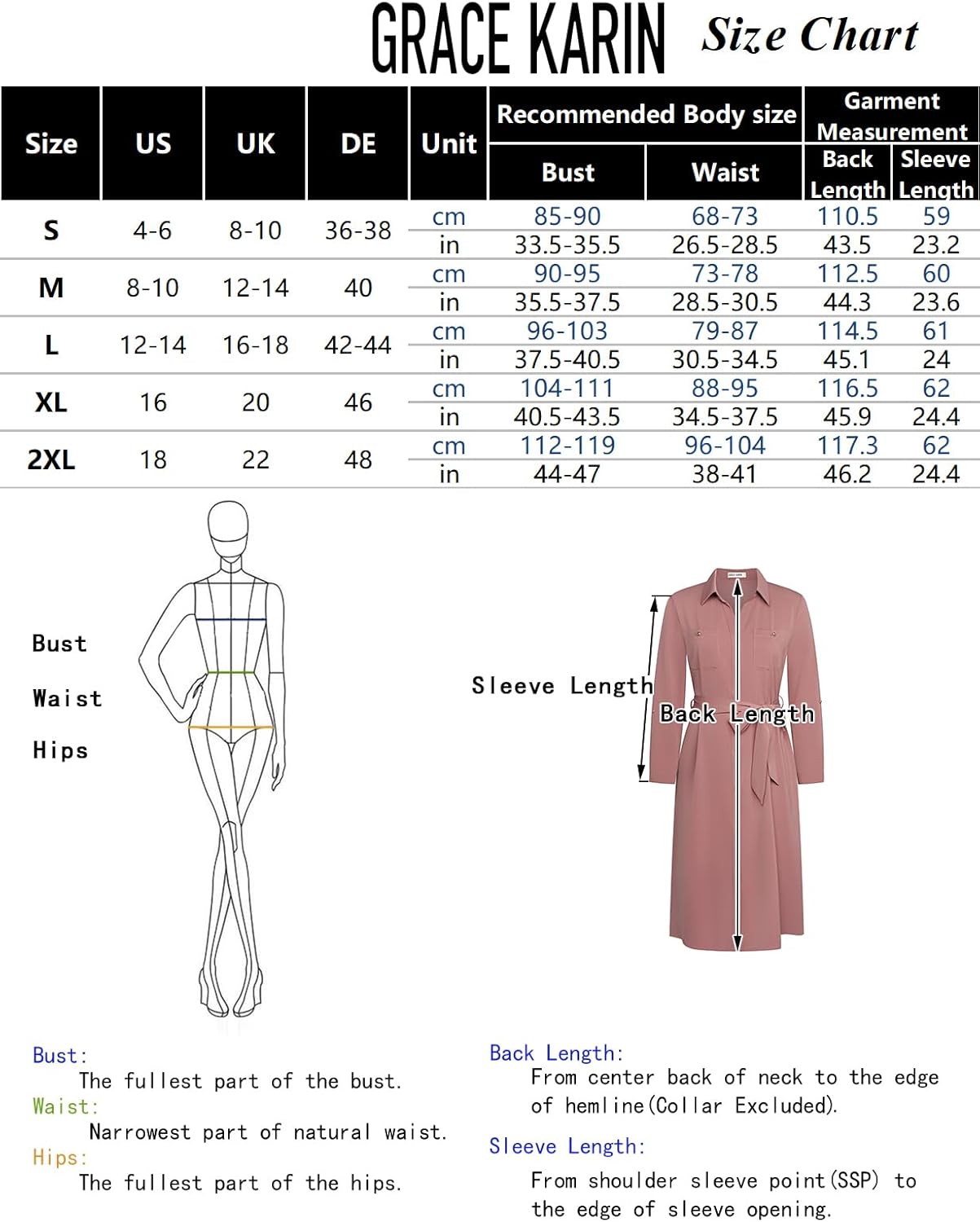 8 reviews for GRACE KARIN Women’s Long Sleeve Button Down Shirt Dress Casual Loose Tie Waist Adjustable Sleeve Length Midi Dresses