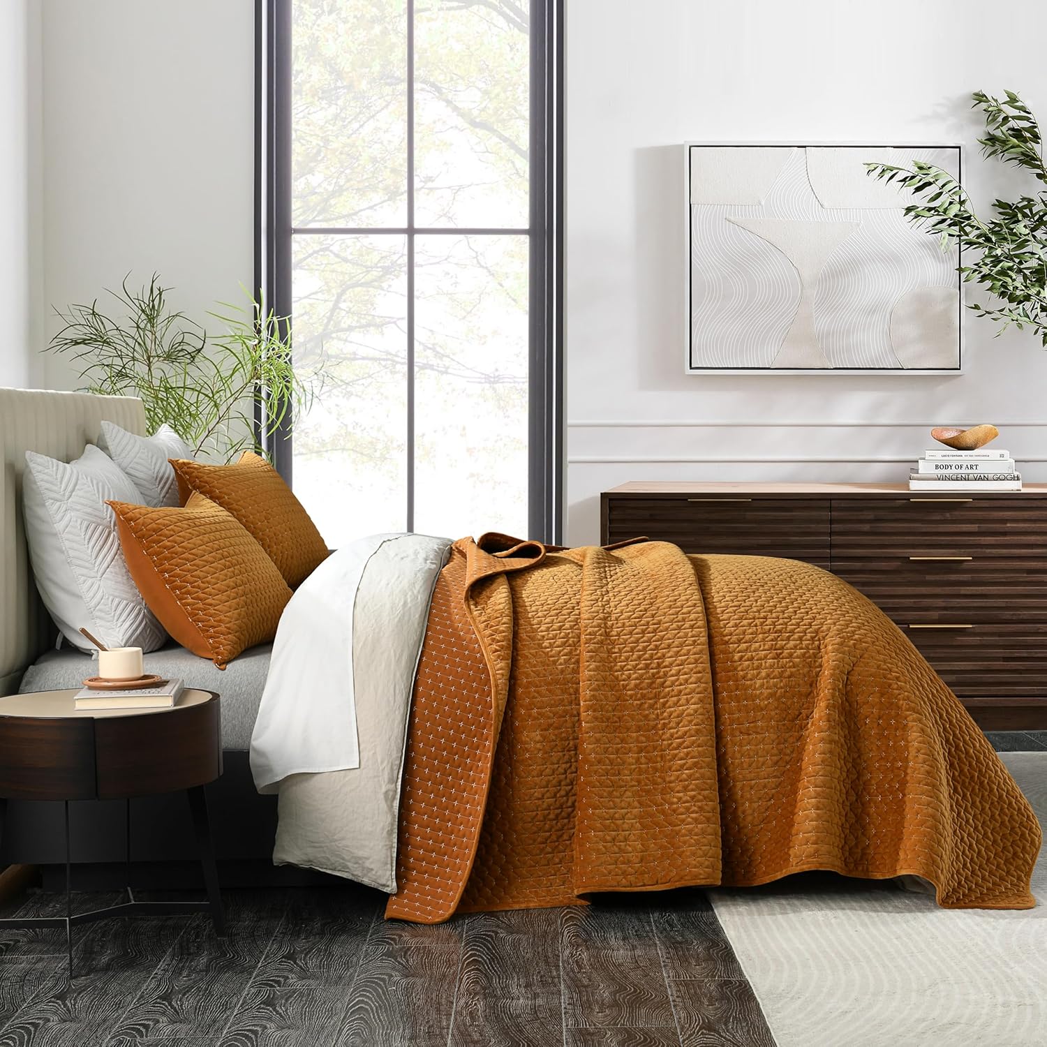 11 reviews for Grassix Velvet Quilt Set King Size – Luxury Cozy Velvet Quilt Bedding Set, Lightweight Velvet Comforter for All Season, Cross Stitch Coverlet Bedspreads with 2 Shams, Gold Caramel