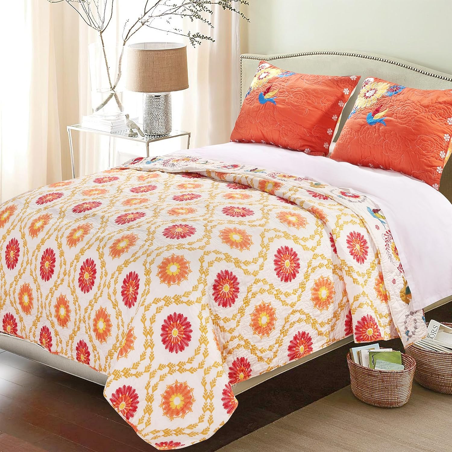 Barefoot bungalow topanga orange bohemian floral quilted bedspread