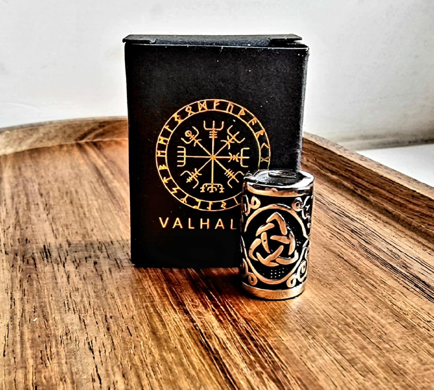 Magnifique perle de barbe avec Triskel celtique finement ciselé..! La taille est imposante, attention donc à déterminer si celà convient à vos besoins.. vu son prix ! Hauteur env. 2,5cm, diam interne 8 ou 9mm ! Lâouverture par charnière est un vrai plus, facilitant grandement les repositionnements intempestifs ð⦠les eternels indécis vont être comblés ! ð la fermeture est sûre, une ouverture involontaire est quasi impossible ! Du beau matos qui fera son effet !