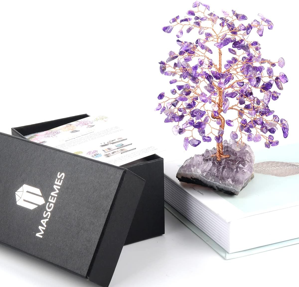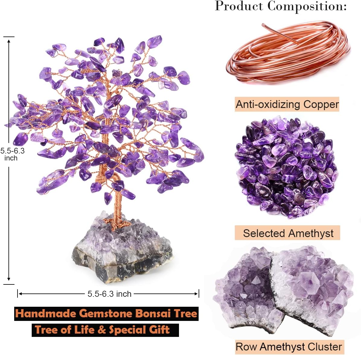 9 reviews for Handmade Chakra Gemstone Crystal Tree of Life,Natural Amethyst with Amethyst Cluster Base,Bonsai Feng Shui Decor Money Tree,Healing Crystals Positive Energy Gift Size 5.5″-6.3″