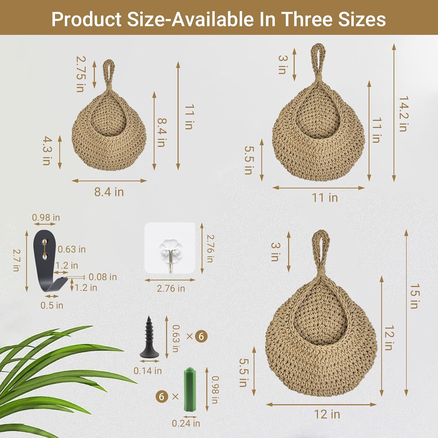 【Multi-functional Hanging Basket】 The wall hanging basket kit can be widely used on many occasions, such as in the kitchen, dining room, living room, children’s room, office, restaurant, patio, etc. Whether using them as woven baskets for storage, vegetable storage, onion storage, hanging fruit baskets, egg baskets, toys, produce baskets, or wall basket decor, they’ll add a natural touch to your home decor. Great present for Christmas