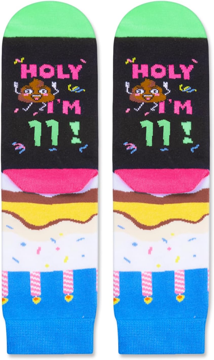 HAPPYPOP 11th Birthday Gift Ideas Socks – Presents for 11 Year Old Boys Girls, Socks for Kids Age 11
