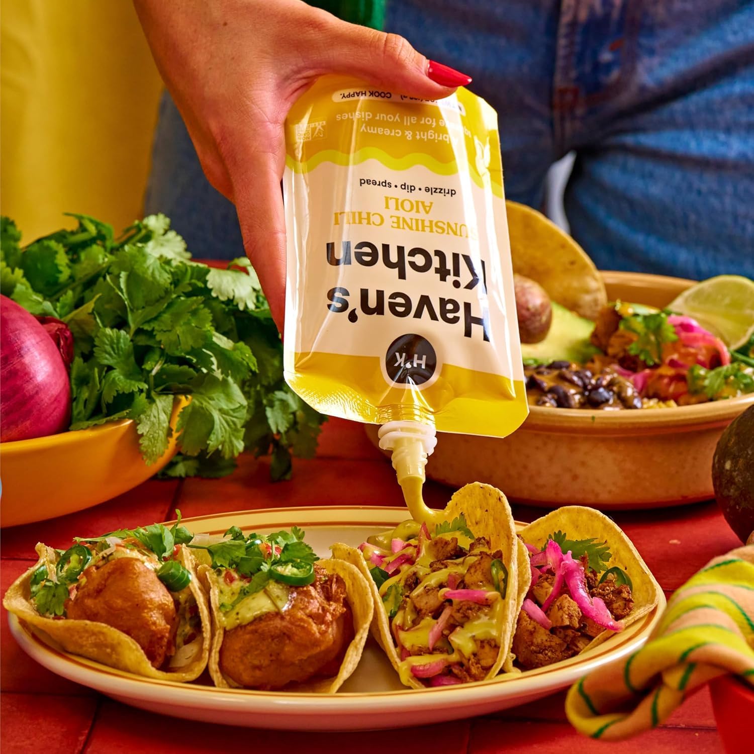 I love all of Havenâs Kitchen sauces for the convenience and flavor and was looking forward to the aioliâs to roll out. I love these aioliâs just as much. They make everything taste so flavorful and theyâre so versatile. My kids love the Herby Yuzu and the Sunshine Chili and use it for salads (nice alternate to Caesar dressing) or veggie snacks. Highly recommend having Havenâs Kitchen aioli in your pantry!