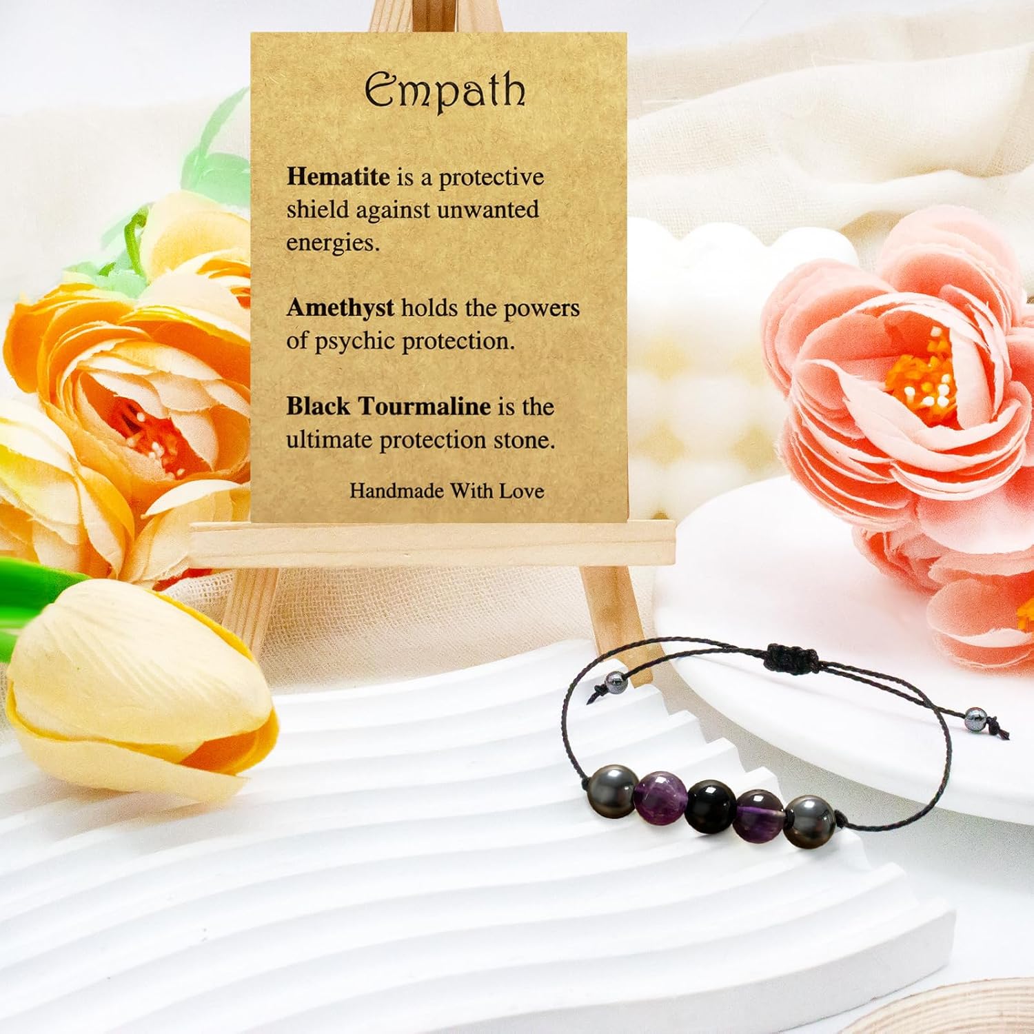 Healing Crystal Bracelet for Women Men Spiritual Crystals and Healing Stones Bracelets Protection Good Luck Empathy Anxiety Amethyst Natural Stone Bracelet with Message Card Jewelry Gift