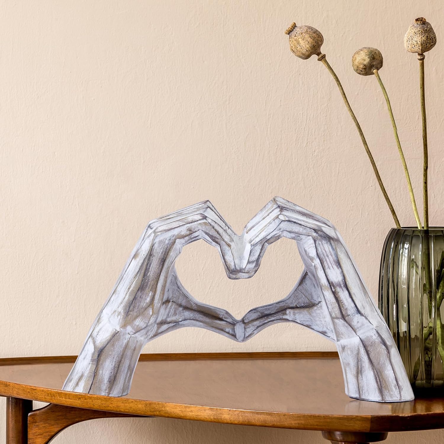 Heart Hands Statue, Resin White Red Sculpture Decor for Living Room Bedroom Bookshelf Coffe Table, Gifts for Women, Suitable Halloween, Christmas (Heart-Wood)