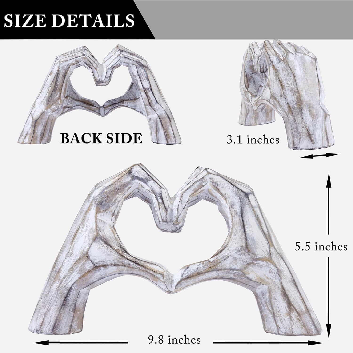 【Size】Heart gesture sculpture size: 9.8 inches long * 3.1 inches wide * 5.5 inches high. This is one piece, It is a decorative ornament and cannot be used as a bookend. Versatile and chic, this statue breaks the monotony of your space and allows you to express your unique style. Whether placed on a mantelpiece, shelf, or coffee table, it adds a touch of glamour and sophistication to any corner of your home.
