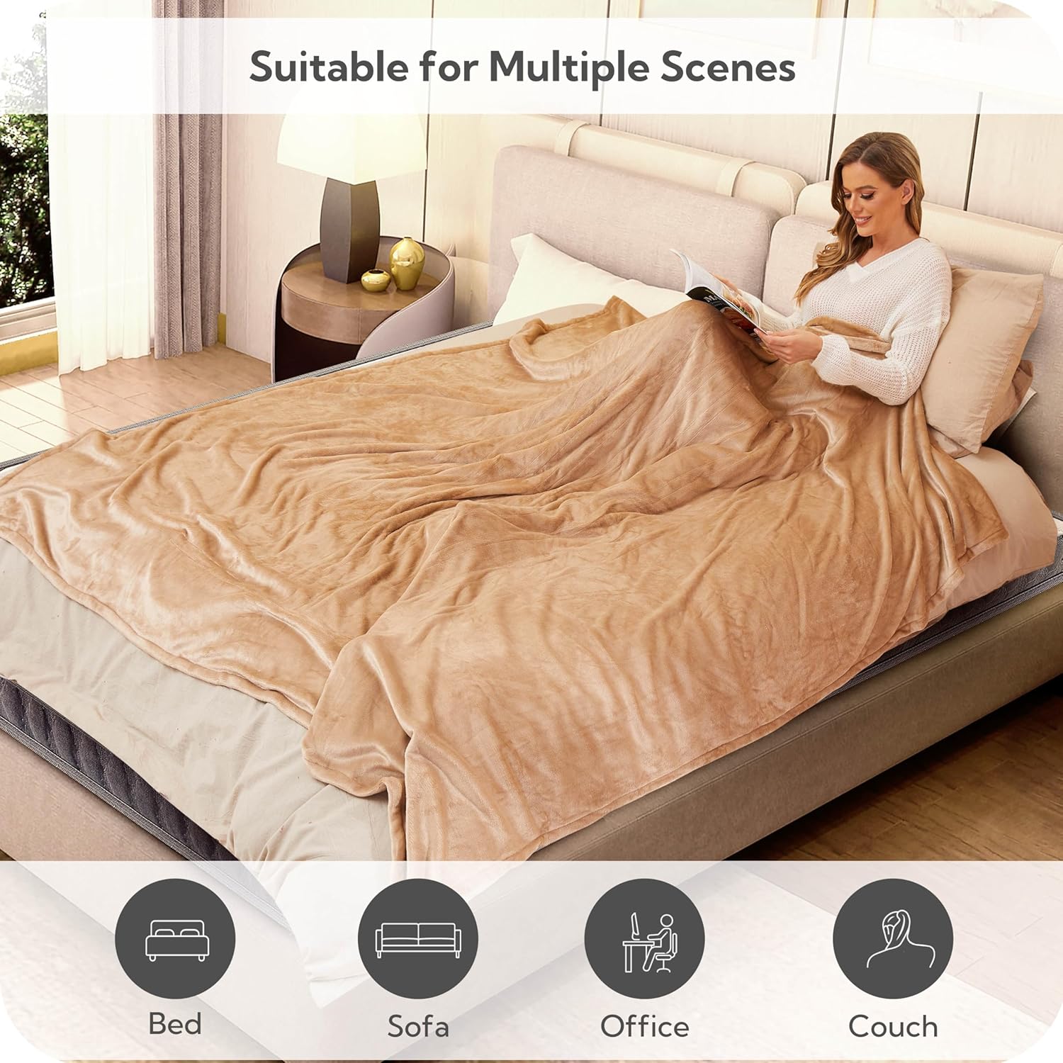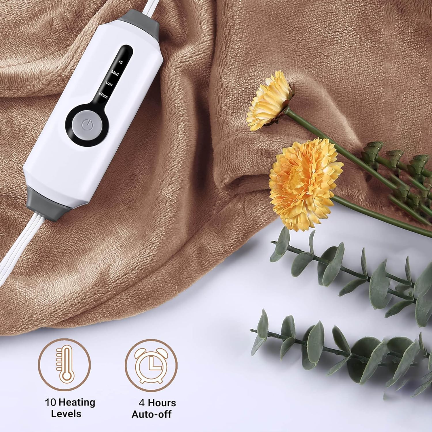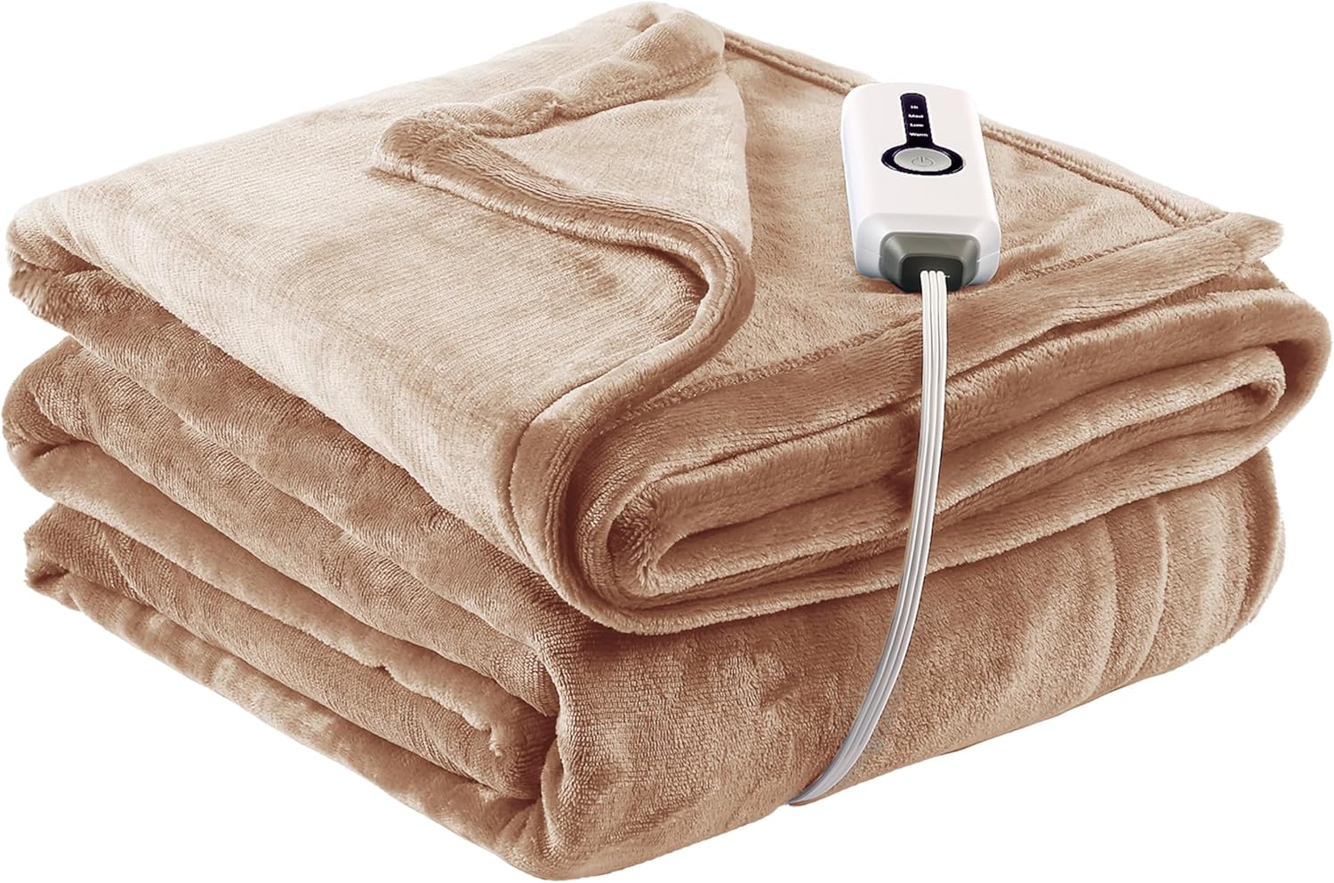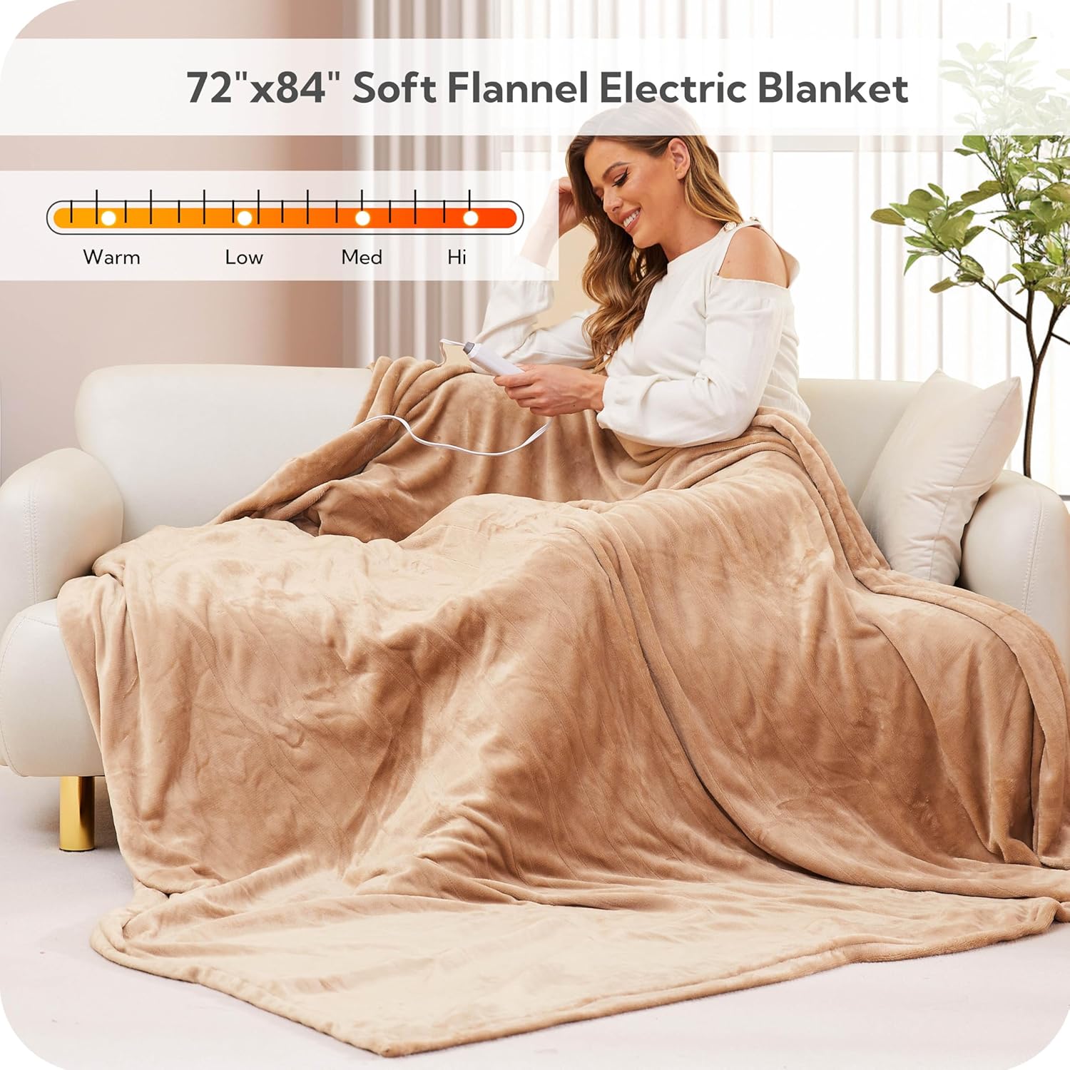 Heated Electric Blanket Full Size 72″x84″ – Soft Warmth Flannel Heated Blanket with 4 Heating Levels & 10 Auto Off – Winter Comfort Sleep, Home Essentials – Light Brown