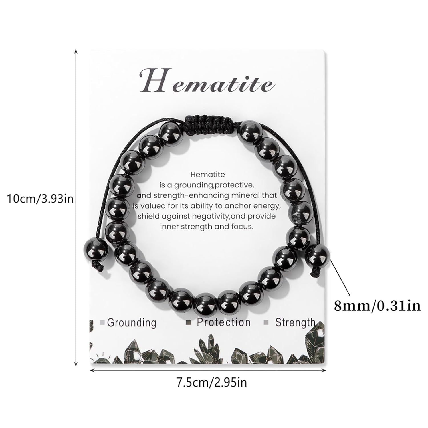 Hematite Bracelet for Men Boys 8mm Adjustable Gemstone Bracelet Crystals and Healing Stones Beaded Bracelets Healing Crystal Bracelets Hematite Jewelry for Women