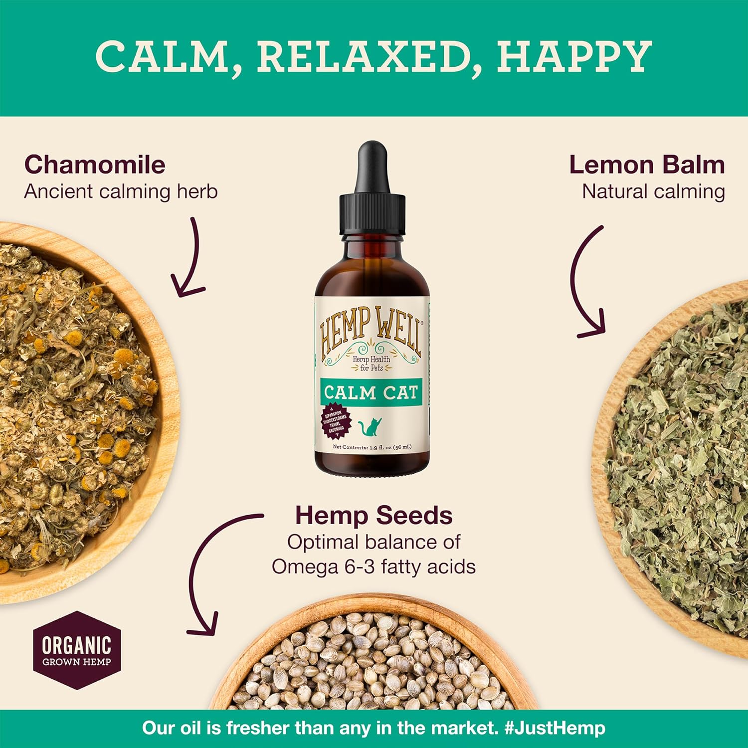 Hemp Well Calm Oil for Cats – Organic Cat Anxiety Relief, Cat Calming and Leading Cat Grooming Supplement. Cat Travel and Urination Deterrent, Relaxation Aid, 2oz