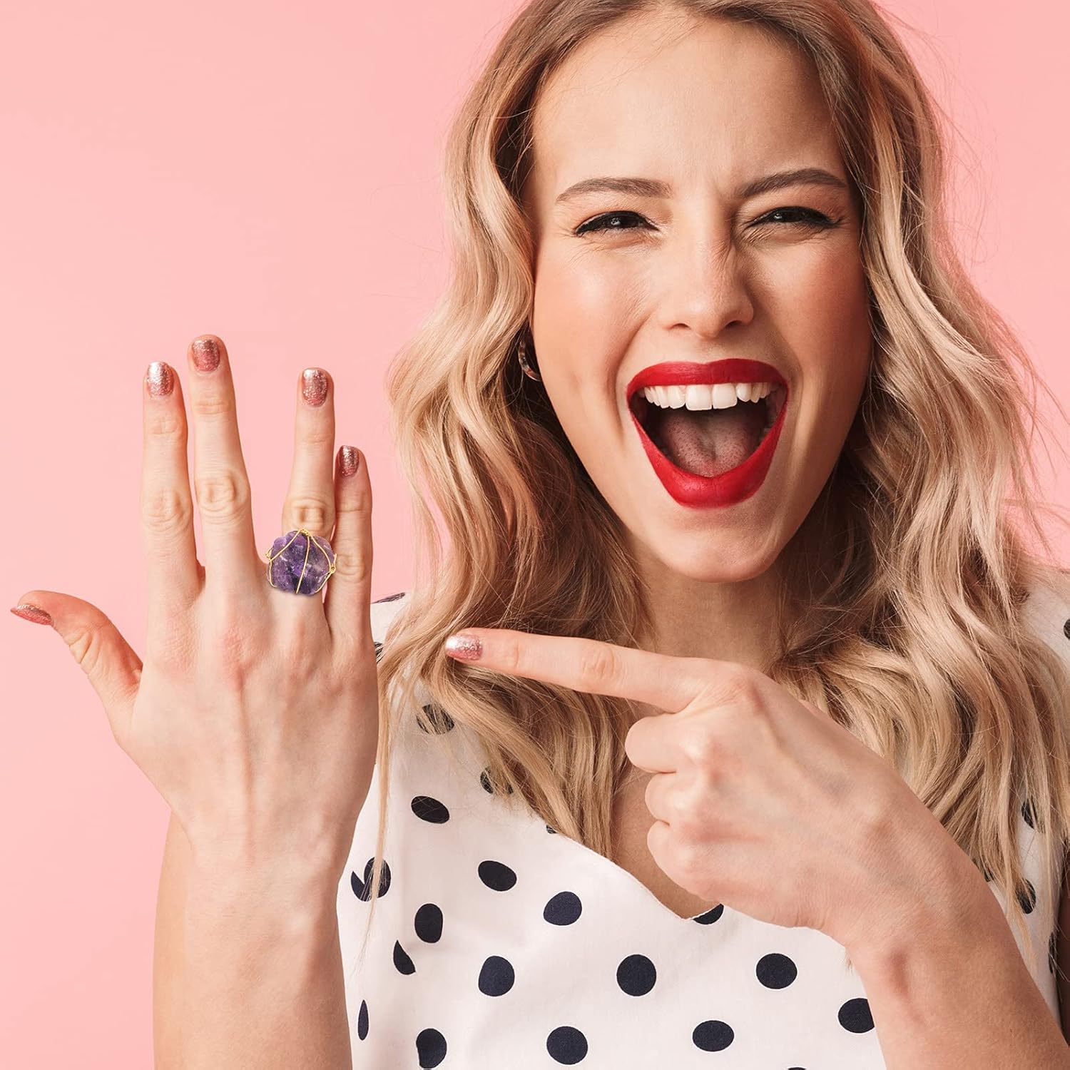 Love the fact they have adjustable band for size, worth the money,quality could be better far as attaching the crystal to the ring material used is thin which causes the crystal not to stay in place it flips up, overall they are cute and color is as shown