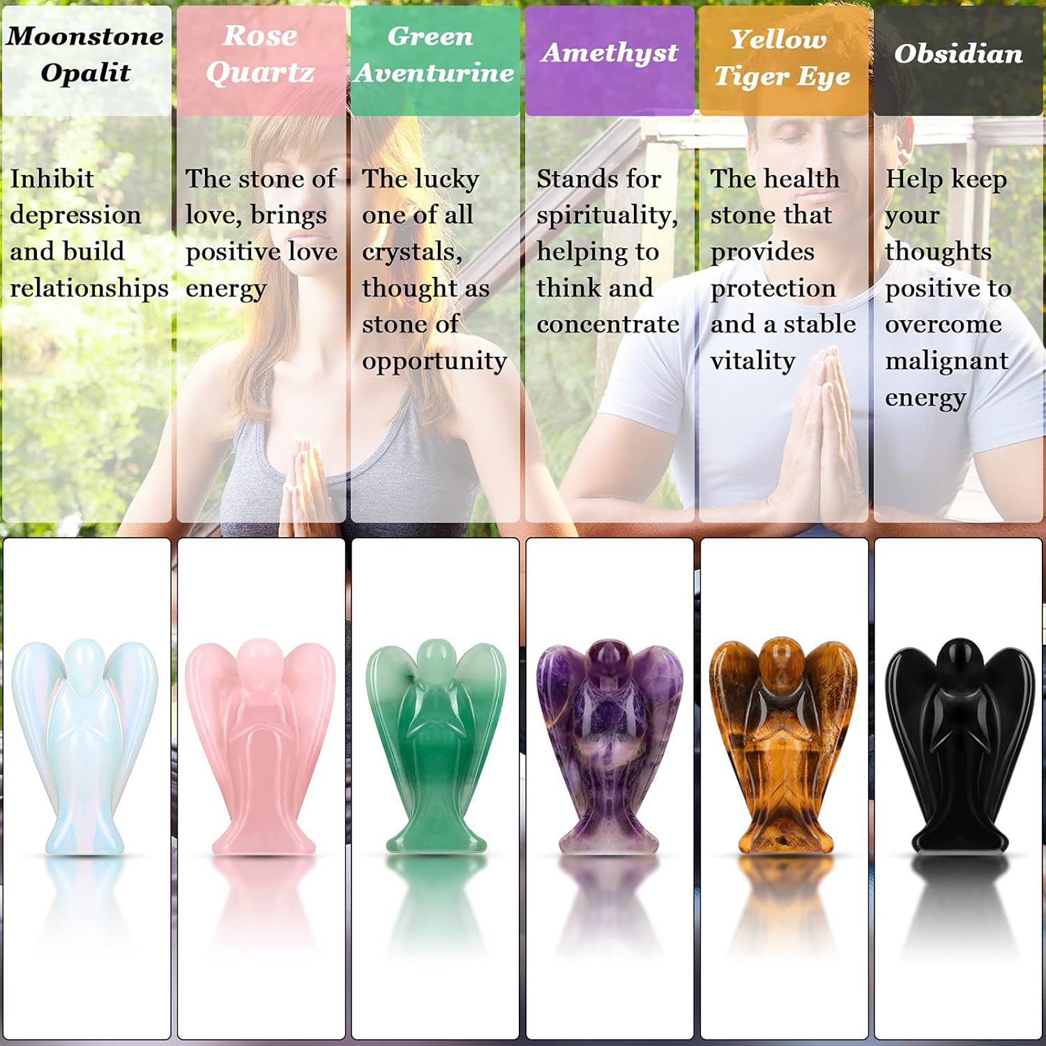What you get: you will receive 6 pieces of guardian angel healing crystal statues in one package, including 6 different kinds of colors – opal, amethyst, pink crystal, green tungsten, black obsidian, yellow tiger’s eye, enough quantity and colors to satisfy your different home decorative requirements, making your home more attractive