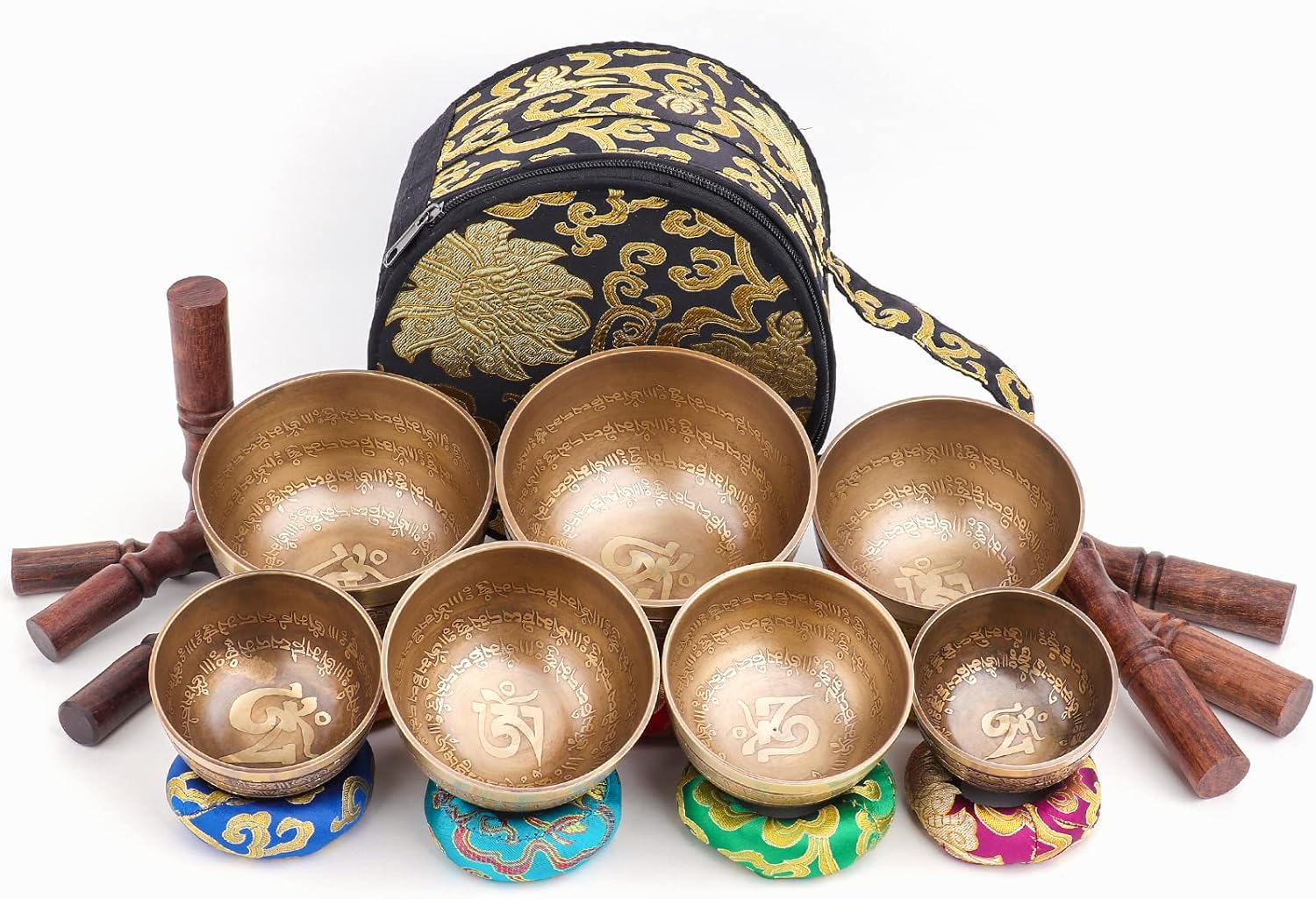 The sound quality with these is a huge improvement over the rubber O rings that came with the bowls. The bowls sit more firmly and are more supported which allows me to play more smoothly.Plus these rings are beautiful and match the chakra colors which is useful for remembering which bowl is for which chakra. They are also well stitched. They are firm and well made. A good quality item.My only complaint is the smallest one for the crown charka bowl is so small. The bowl is not held as firmly as I would like. I feel a little uneasy using it which is such a shame because it is so beautiful. But it’s just to small for a 6 inch bowl. Honestly the smaller one should be the same size as the next smallest.