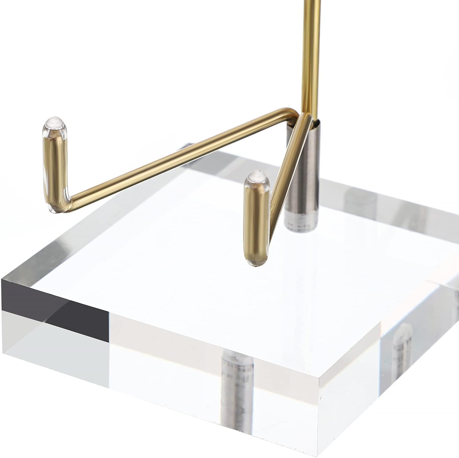 Hipiwe Clear Acrylic Display Stand Holder with Adjustable Metal Arms Display Easel Stands for Gemstones Fossils Minerals Agate Slabs Plates Crystals Saucers Collectibles, 2.4×2.4×4.1 inch