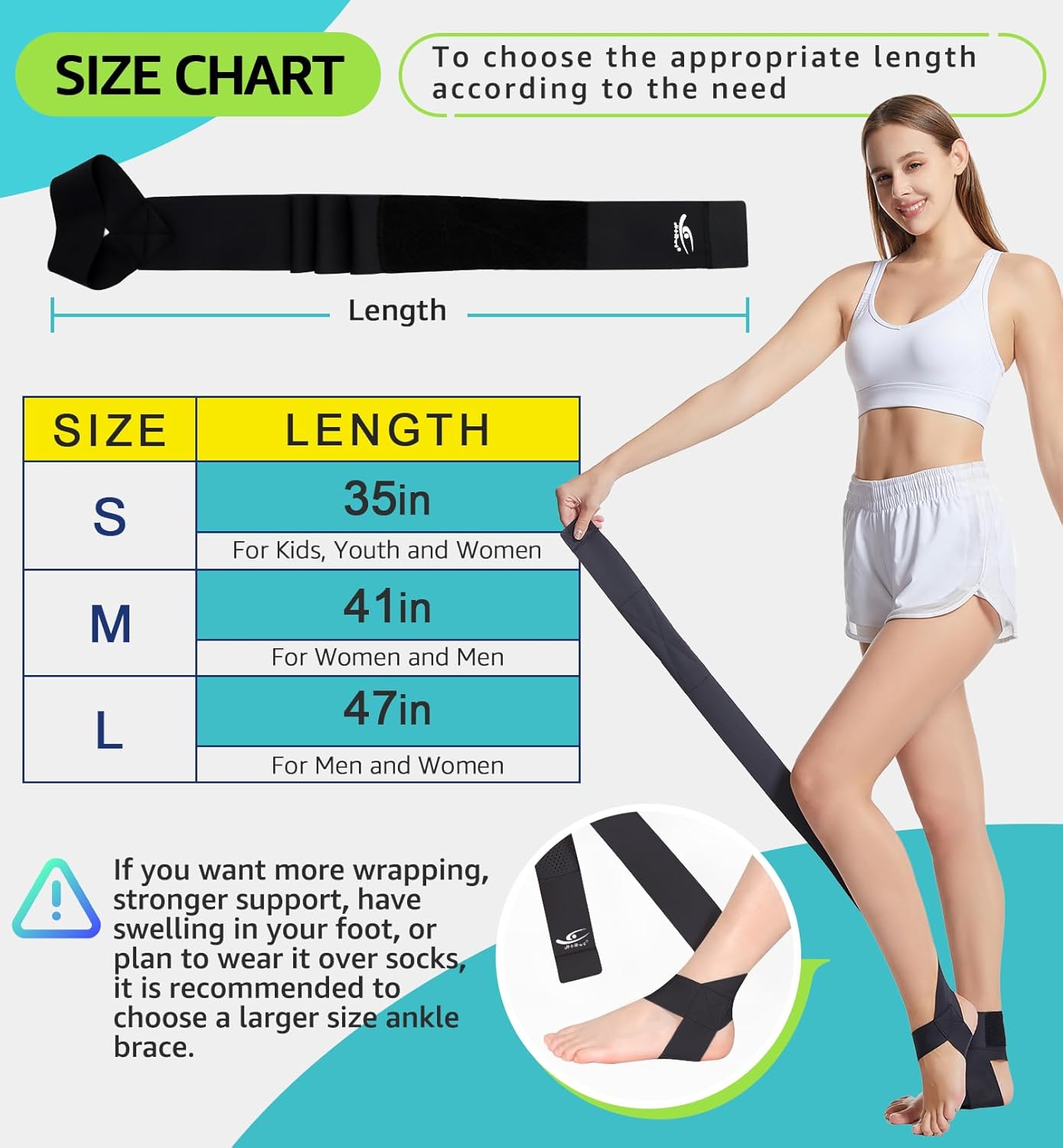 3 sizes for your choice: Size [ S ], length=35″, suggest for Kids, Youth and Women. Size [ M ], length=41″, suggest for Youth, Women and Men. Size [ L ], length=47″, suggest for Women and Men. Different sizes with different lengths, providing different levels of wrapping. With Velcro closure, the stabilization of your ankles remains securely fastened with perfectly compression, easy to put on and take off, fits both right and left feet.