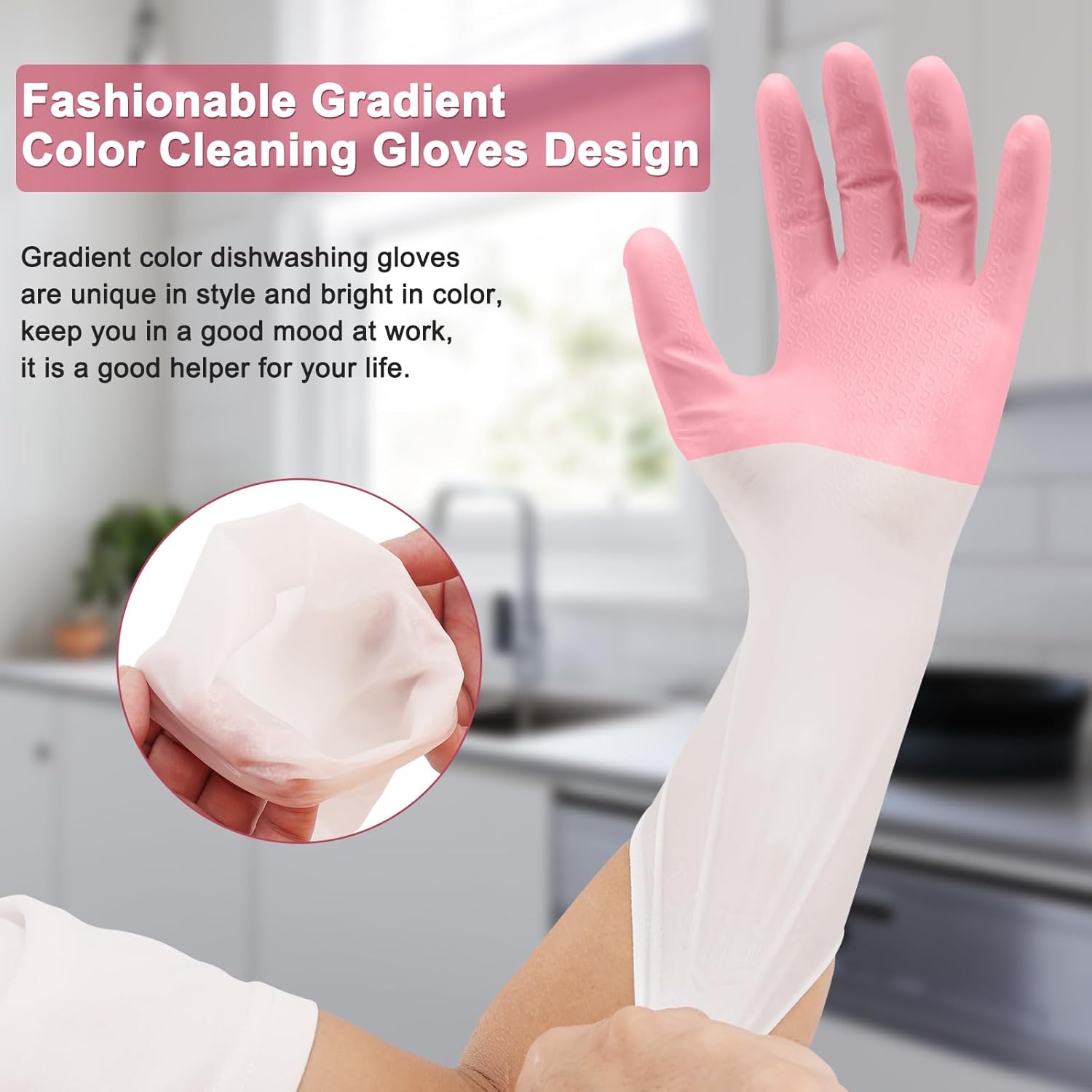 The elastic Rubber Cleaning Gloves are non-binding, not easy to move, and ensure your hands and clothes stay dry.Smooth lining,giving you a comfortable and soft touch,making household tasks a breeze.