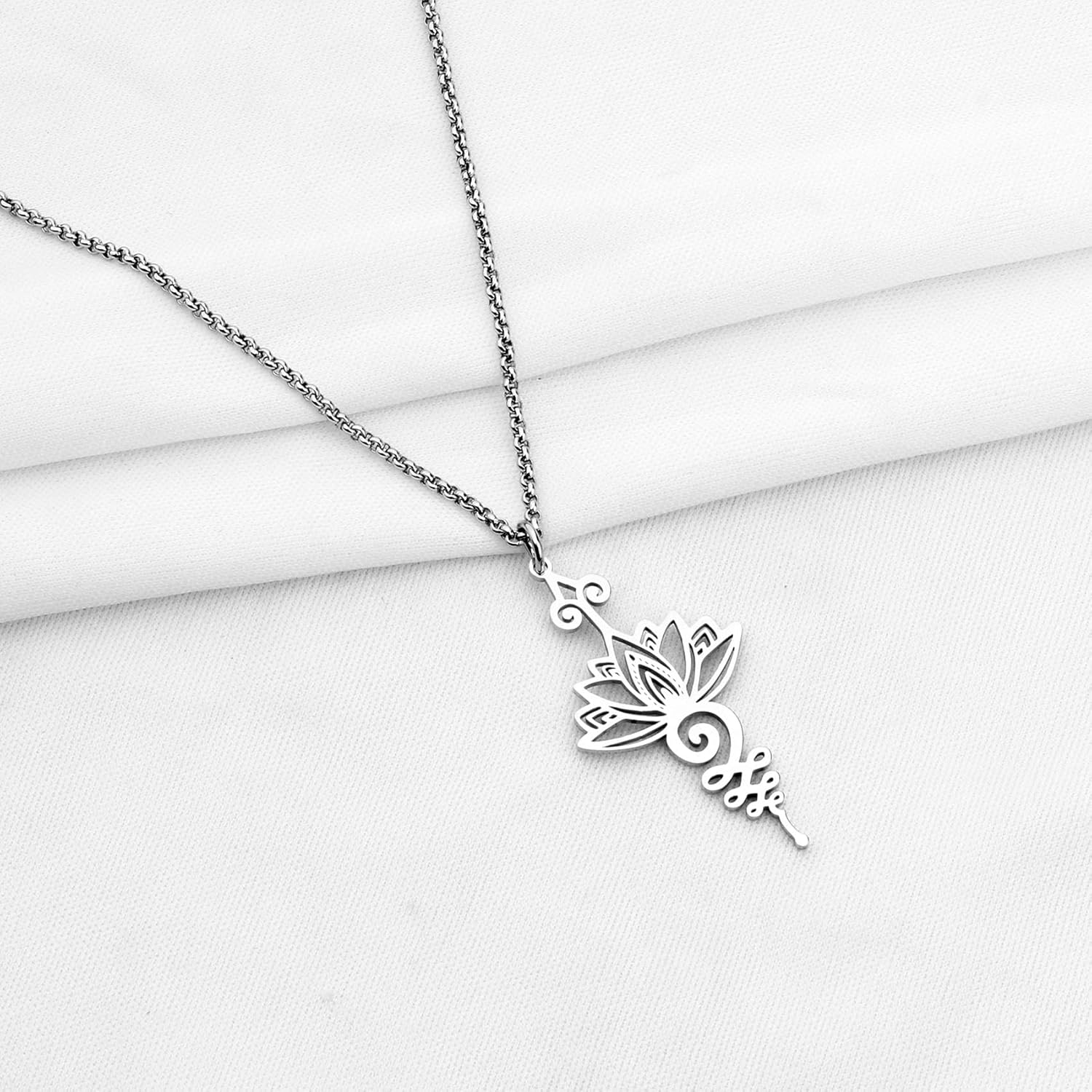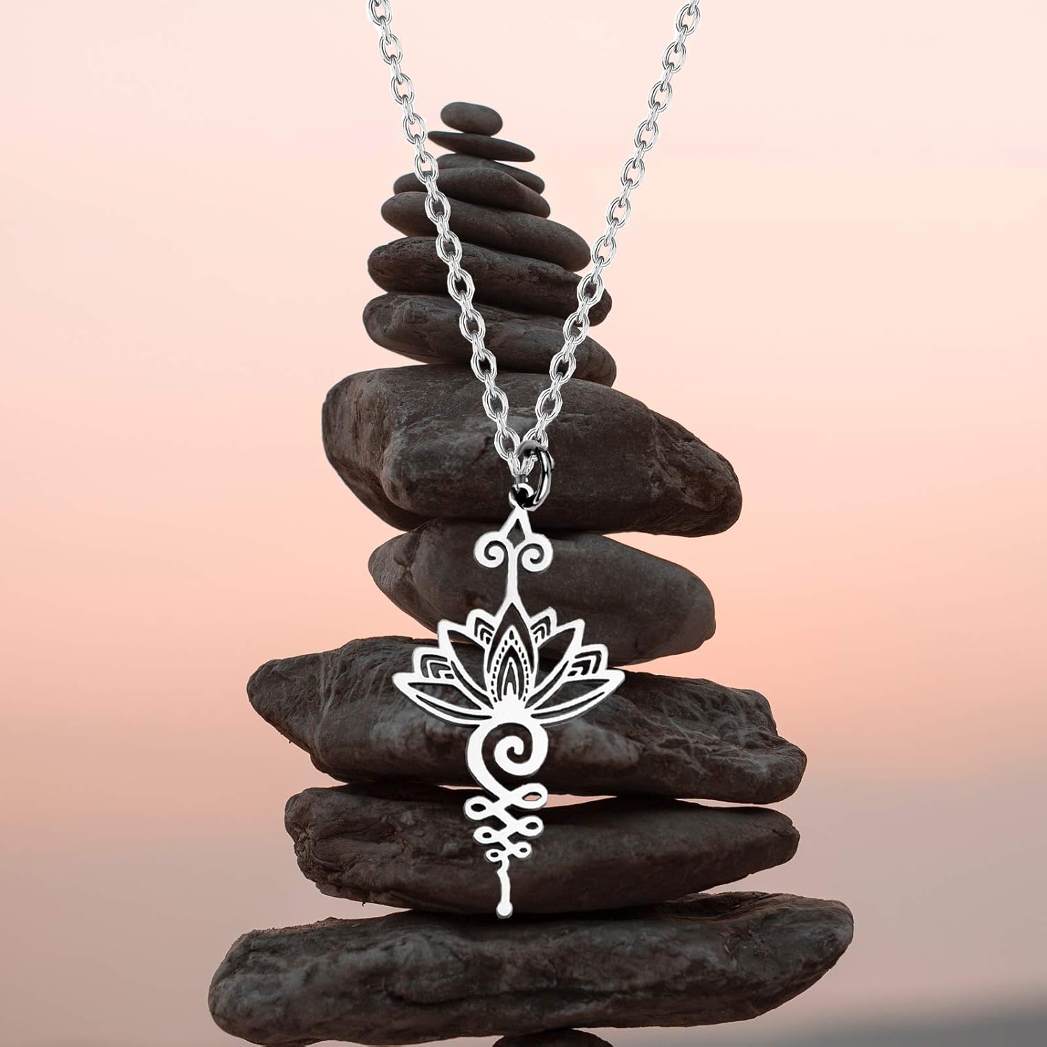 8 reviews for Hollow Out Unalome Lotus Necklace Keychain Yoga Buddhism Jewelry Spiritual Gifts
