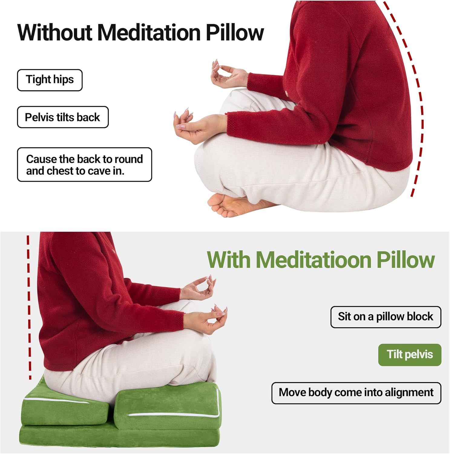 【Multi-functional Meditation Pillow】Sitting on the floor is cold and uncomfortable, you can use this meditation mat designed for yoga and meditation to help you focus on your mind and body and enjoy deep meditation. Helps you maintain proper posture while doing yoga poses or meditation. The knee and hip support cushion can relieve the pressure on your hips, knees, and meditation novices are also suitable for use, so that you can feel comfortable and peaceful while meditating or practicing yoga.