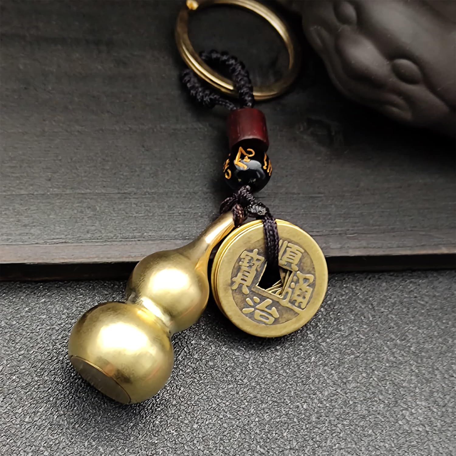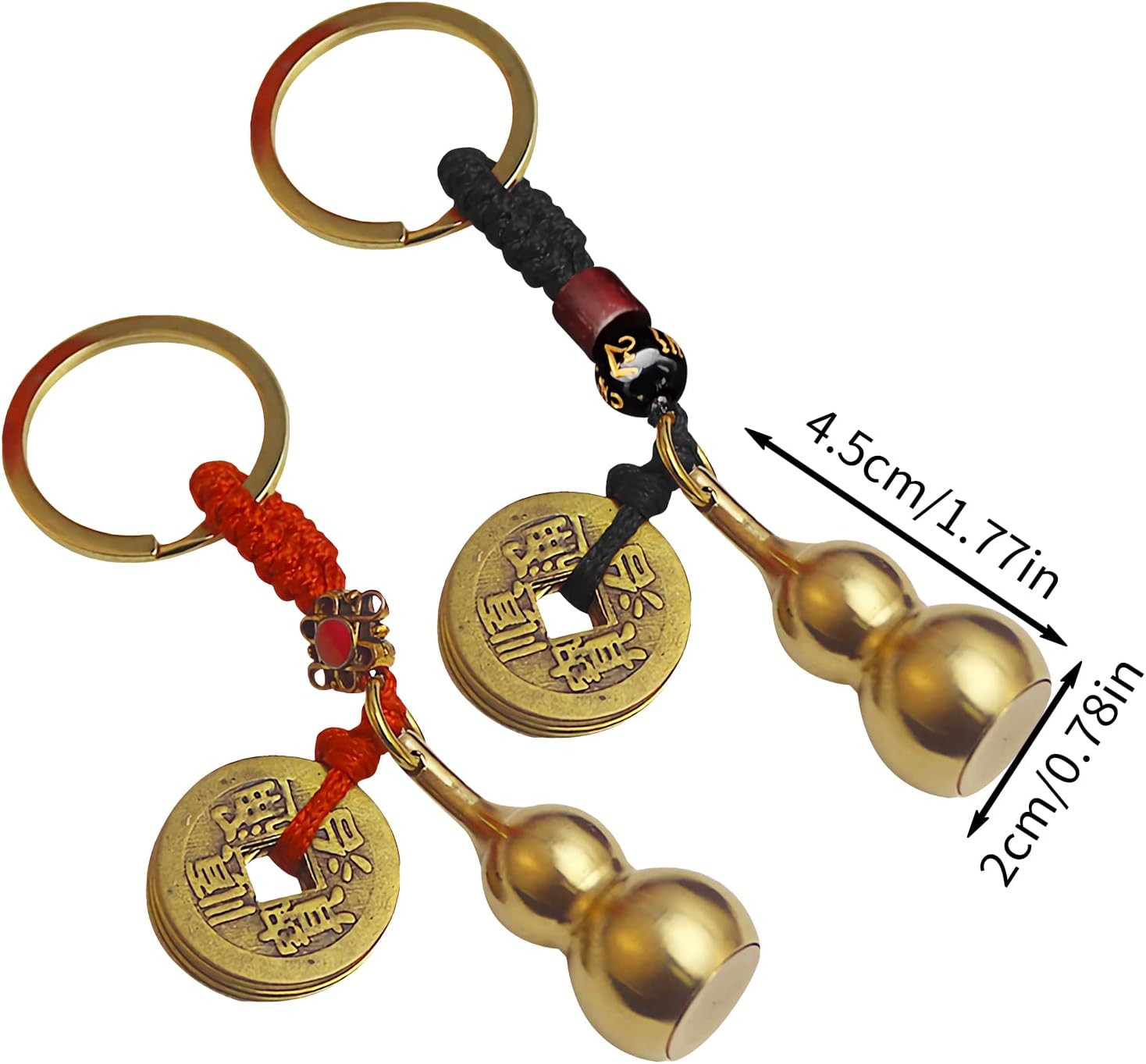 HomeSoGood 2 Pieces Gourd Keychain, Feng Shui Coins with Brass Calabash Key Chain, Lucky Rope Pendant