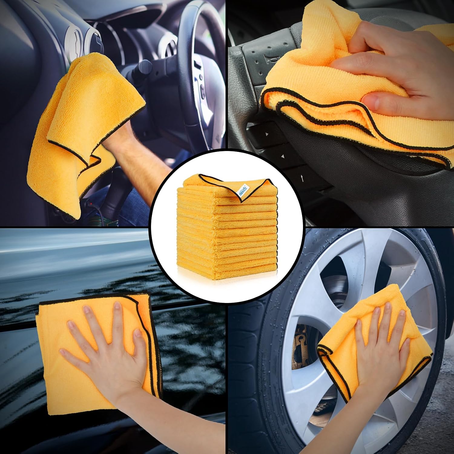 HOMEXCEL Premium Microfiber Towels for Car, High & Short Pile Micro Fiber Cleaning Cloth for Car Washing Drying & Auto Detailing, Lint Free, Scratch Free, Water Absorption, 16 x 16 Inch, 12 Pack