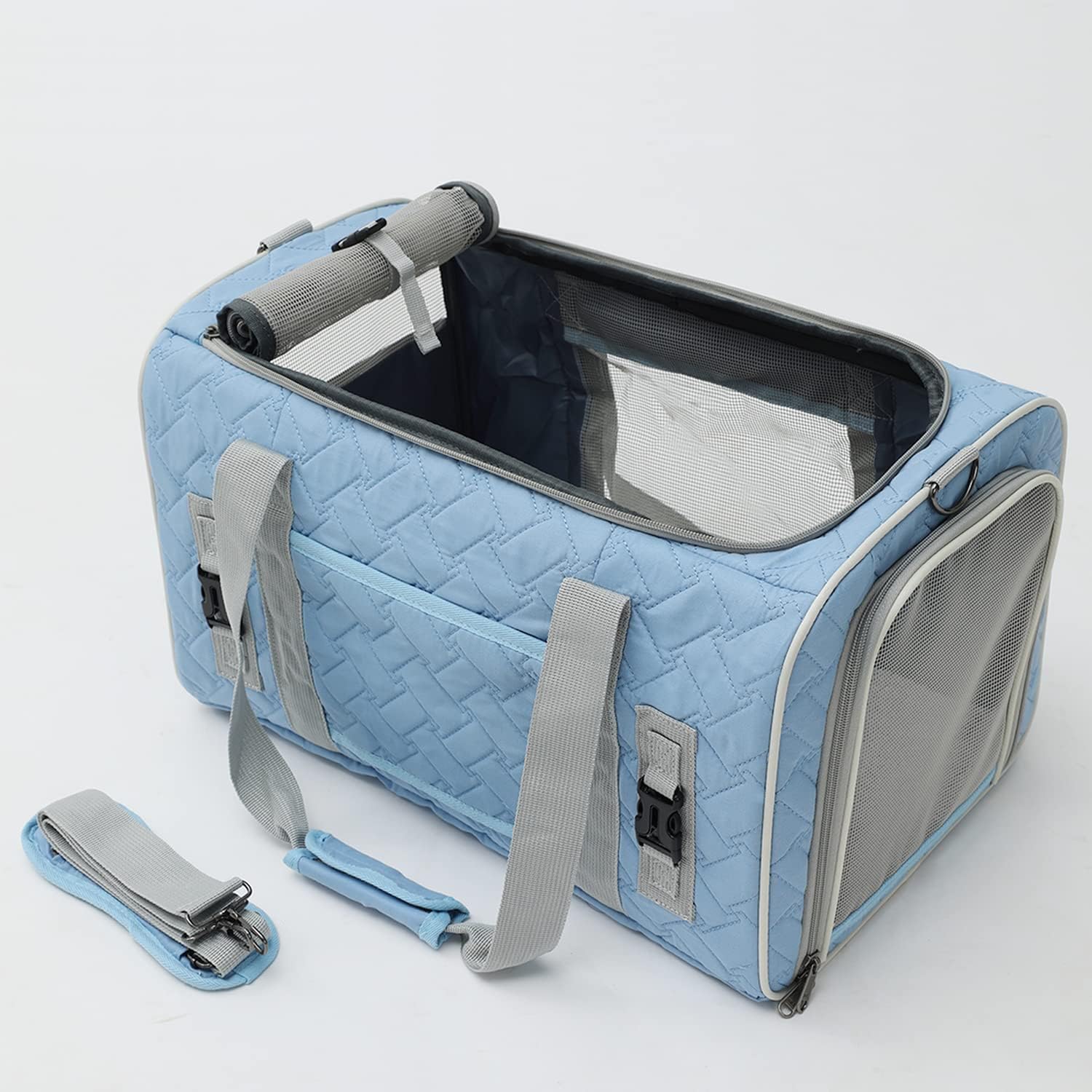 HSC PET Cats Carrier Soft-Sided Quilted Pet Pups Bag Temporary Kennel Fit Luggage Case Traveling Outdoor Go to Vet, Side Pocket,15 lbs Puppy/18 lbs Cat or Kittens (Light Blue)