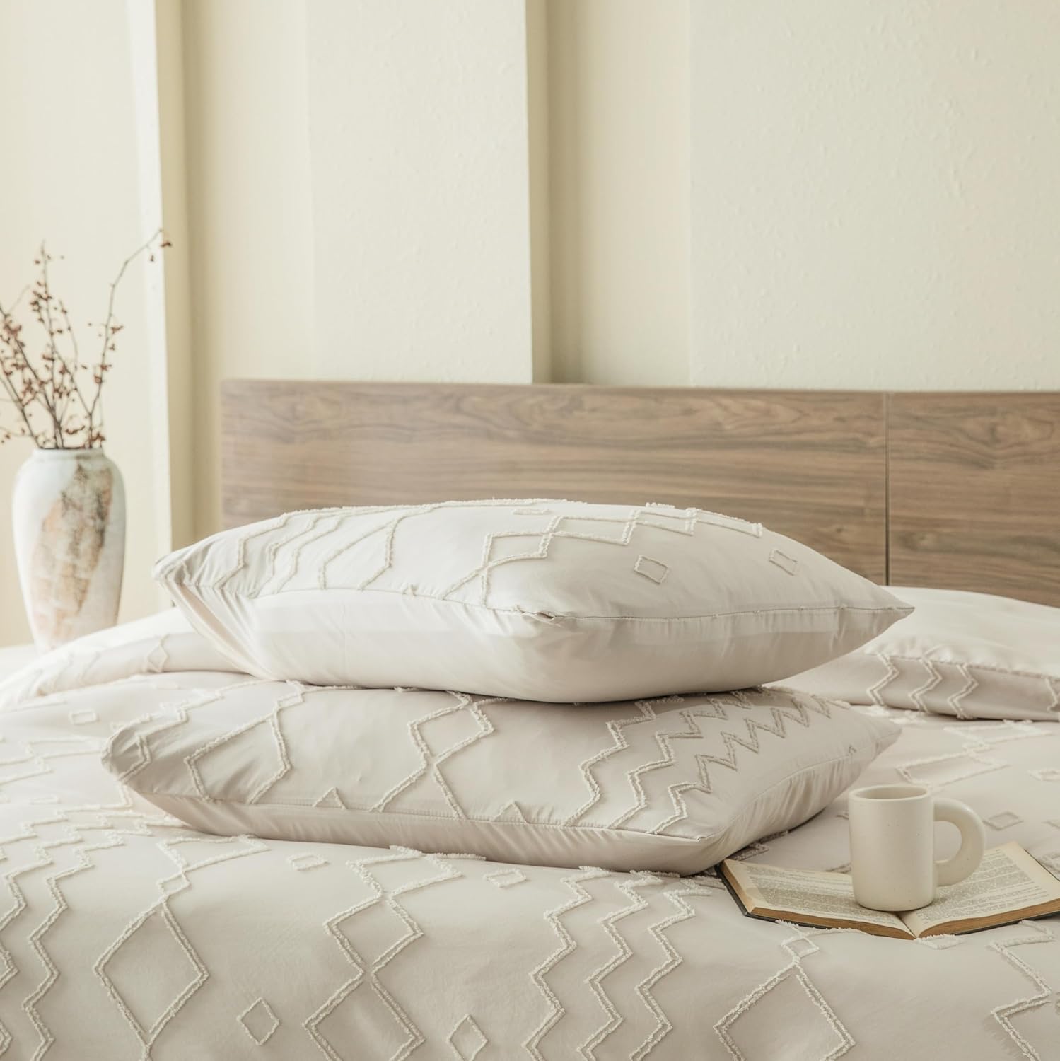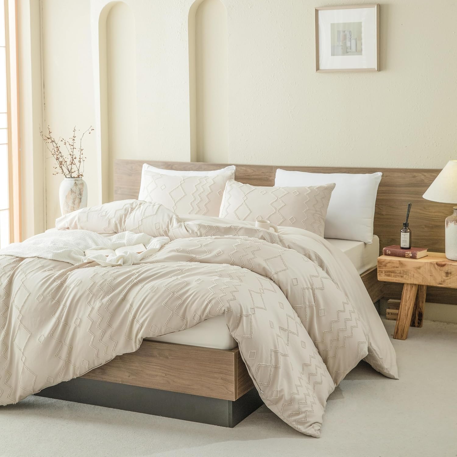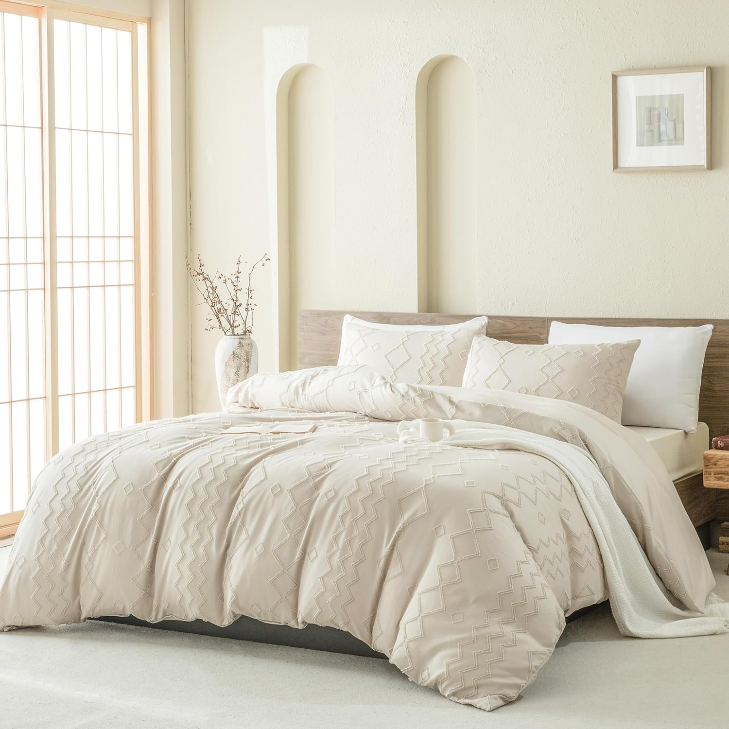 8 reviews for HSKIKWN Tufted Duvet Cover King Size Boho Bedding Microfiber Beige Duvet Cover Set Full 104″x90″for All Seasons 3 Pieces Embroidery Shabby Chic Home Bedding