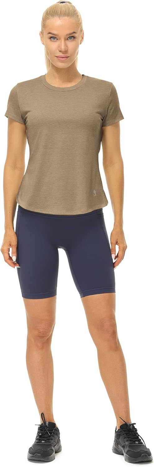 11 reviews for icyzone Short Sleeve Workout Tops for Women, Open Back Athletic Gym T Shirts, High Neck Running Yoga Tees