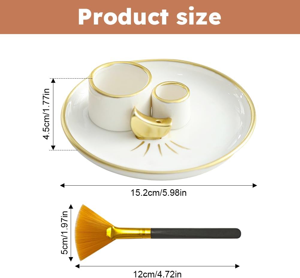 【YOU WILL GET】You will get 1pc incense candle holder, 1pc cleaning brush. The incense burner holder is made of two cylindrical holes of different sizes and heights, and the ceramic ornament in the shape of the moon goddess is placed in the center of this tray, which is very unique and artistic.