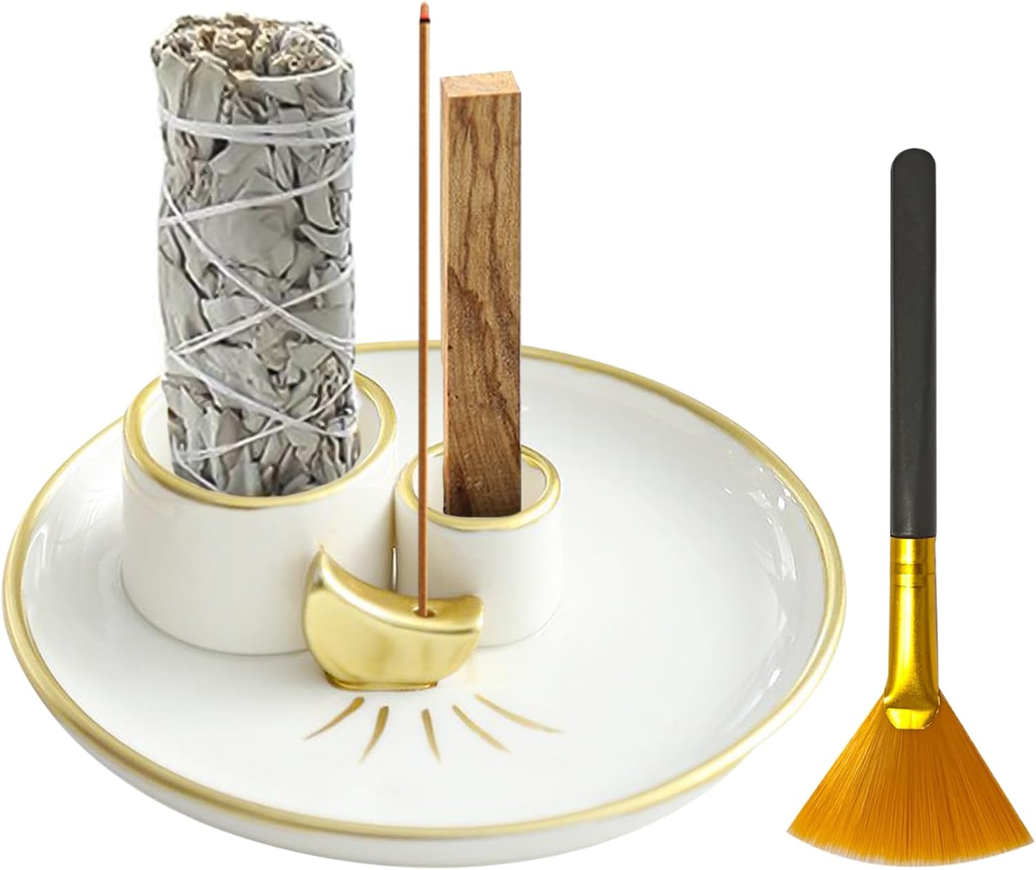 Incense Holder,4 in 1 Incense and Candle Holder with Cleaning Brush,Ceramic Ash Catcher Tray Incense Candle Holder for Meditation Room,Spa,Reading Room,Tea House,Church,Home,Office