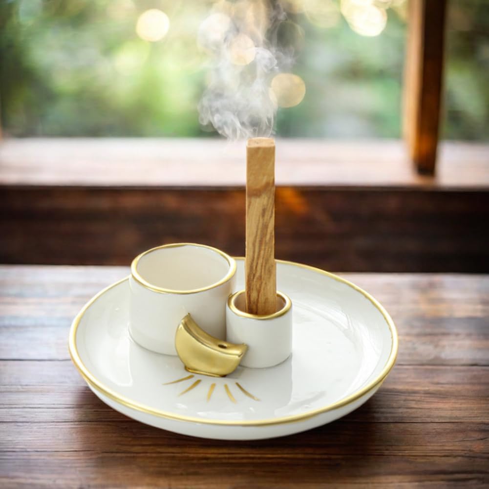 【WIDE USE RANGE】 The incense candle holder can hold the candles, incense towers, coils, and incense sticks etc., so with this you can burn both of them, it is very functional. You can burn the palo santo stick in your bedroom, office, relaxing garden, it all will be a nice decor.