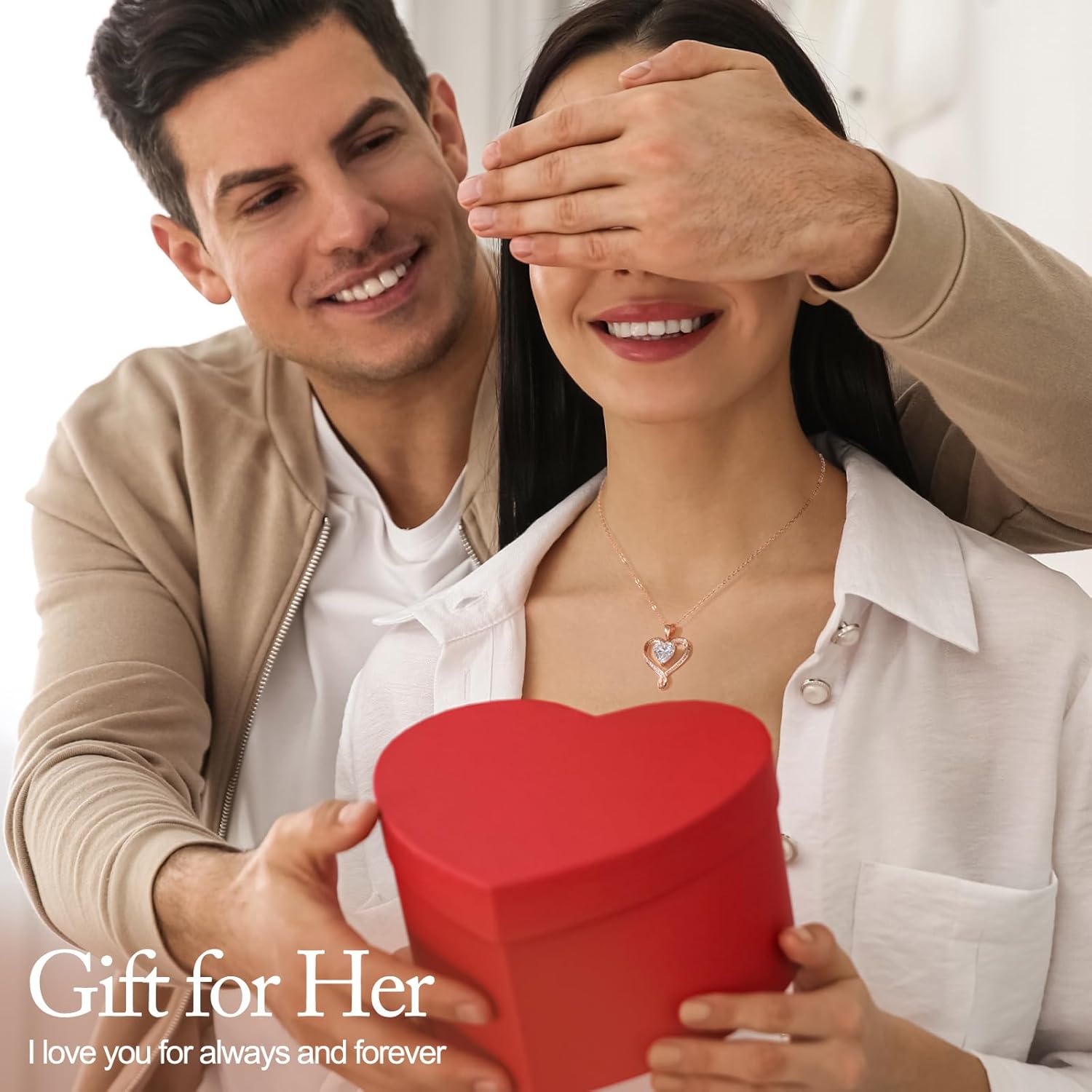 Infinity Heart Pendant Necklace for Women 925 Sterling Silver, Rose Gold Birthstone Necklace for Women, Anniversary Birthday Gifts for Her Wife Daughter Girlfriend Girls
