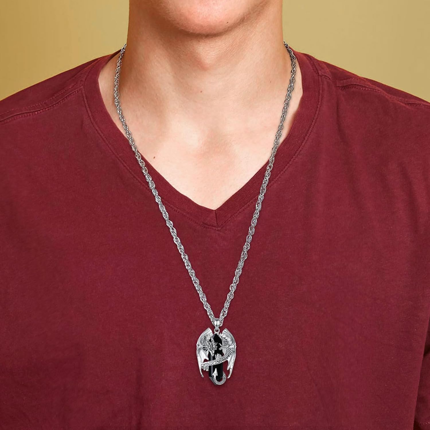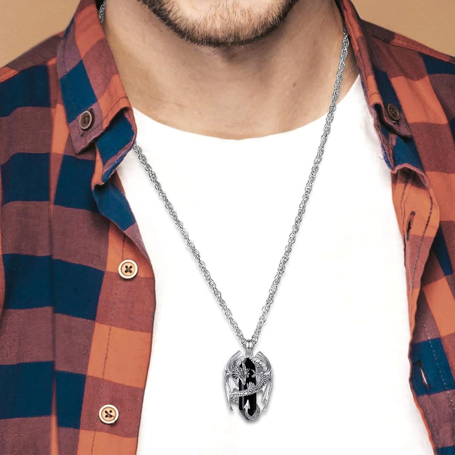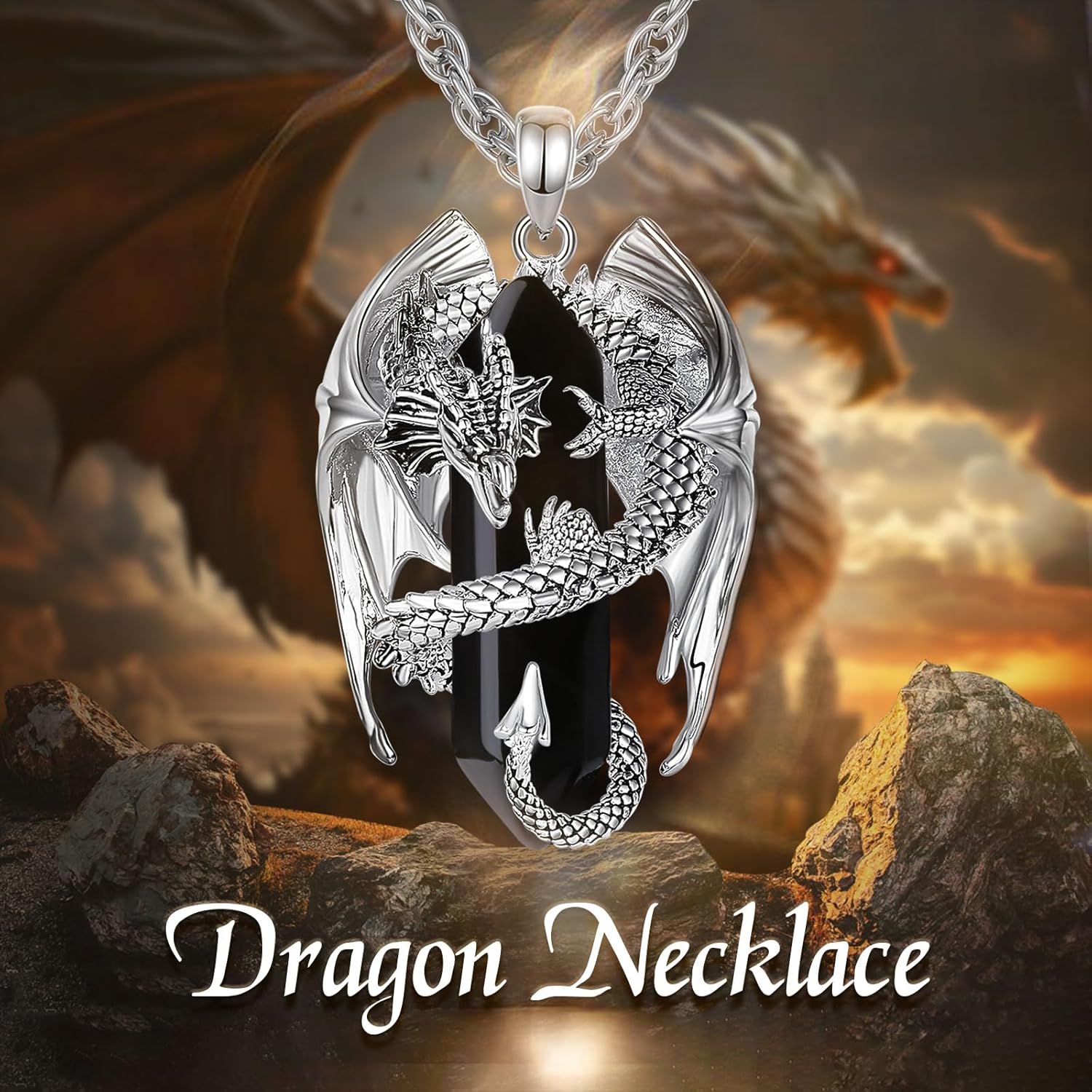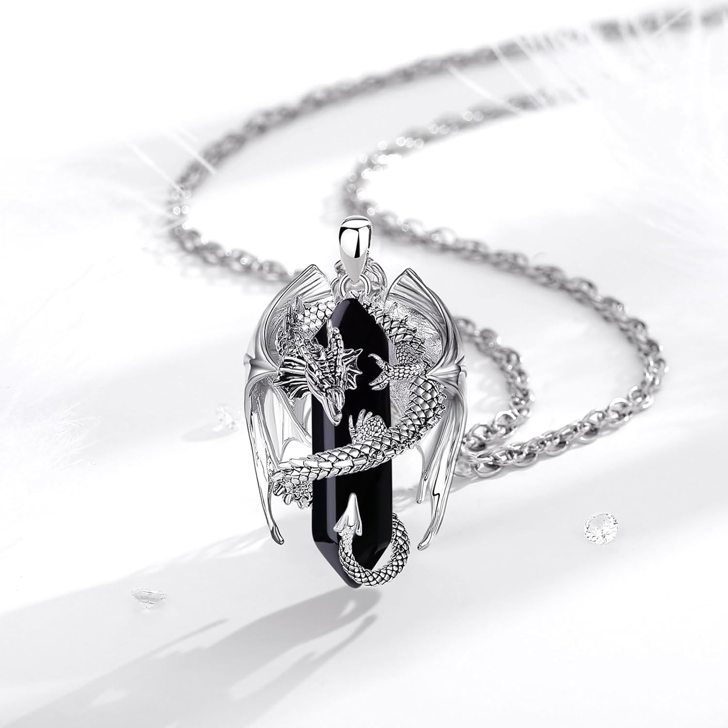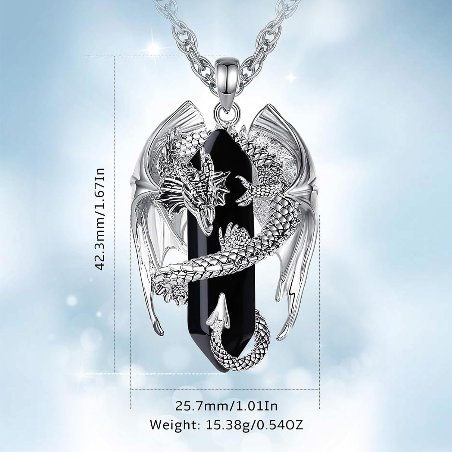 INFUSEU Dragon Necklaces with Healing Crystal Stone for Men Women, Unique Personalized Spiritual Gifts, 22+2 Inch Chain
