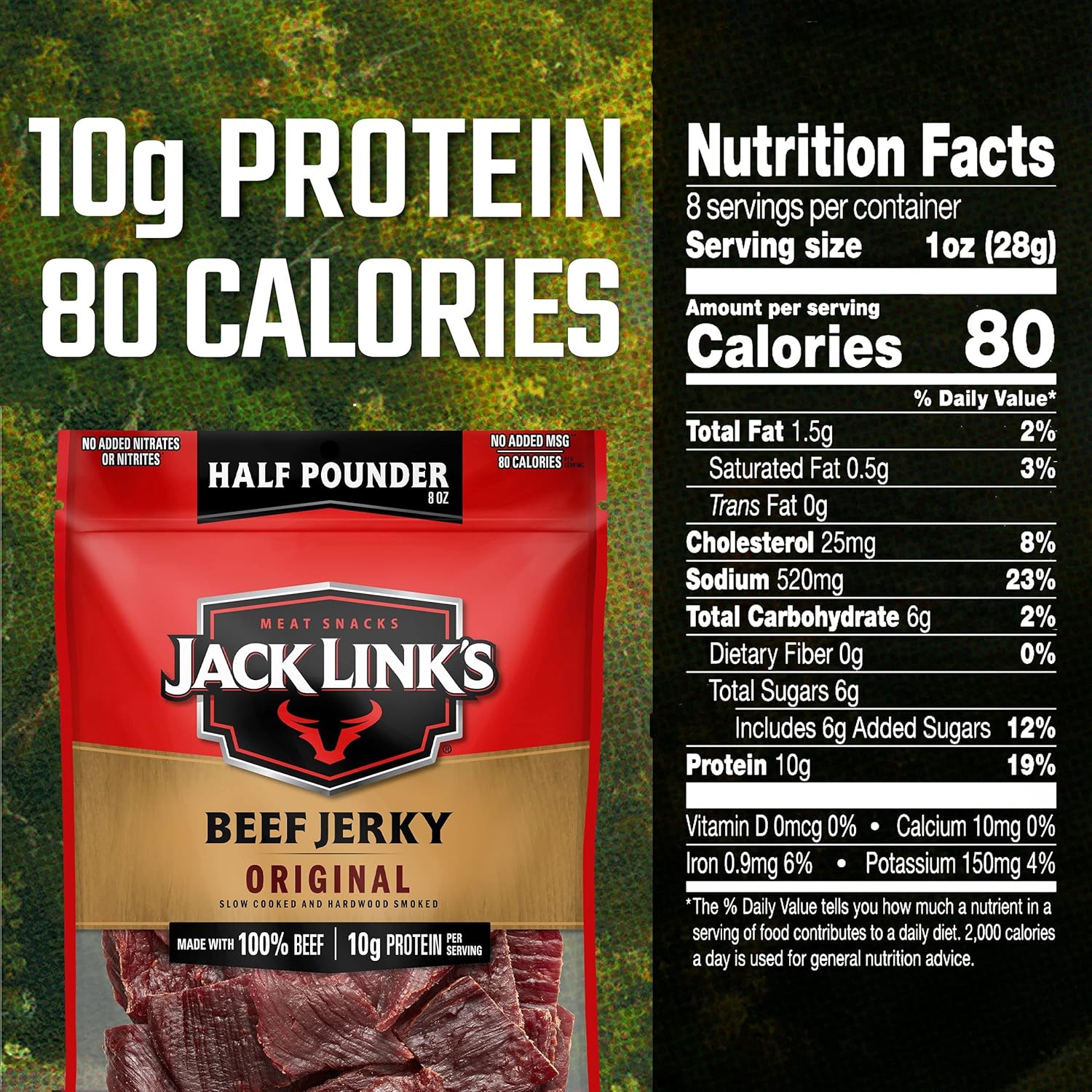 Jack Link’s Beef Jerky, Original, 1/2 Pounder Bag – Flavorful Meat Snack, 10g of Protein and 80 Calories, Made with Premium Beef – 96% Fat Free, No Added MSG