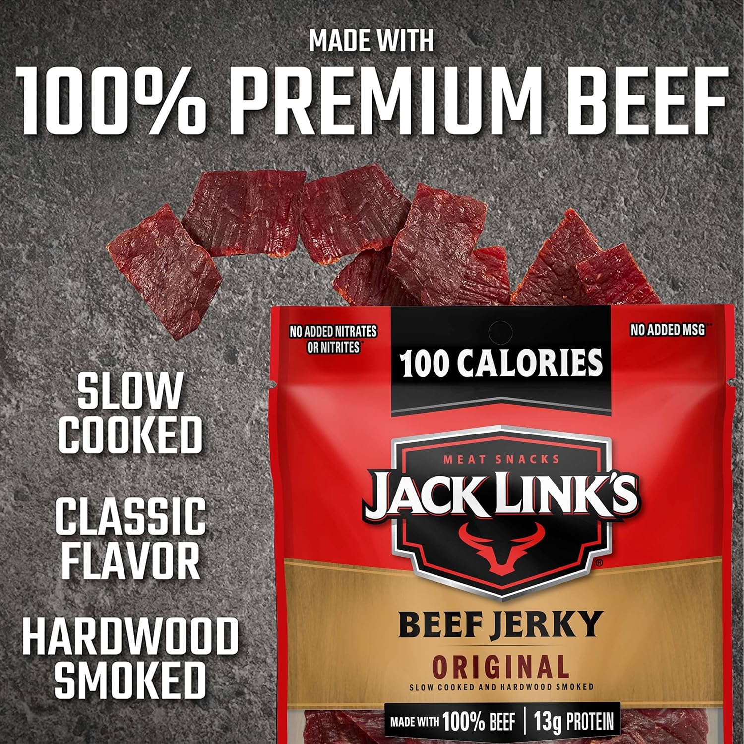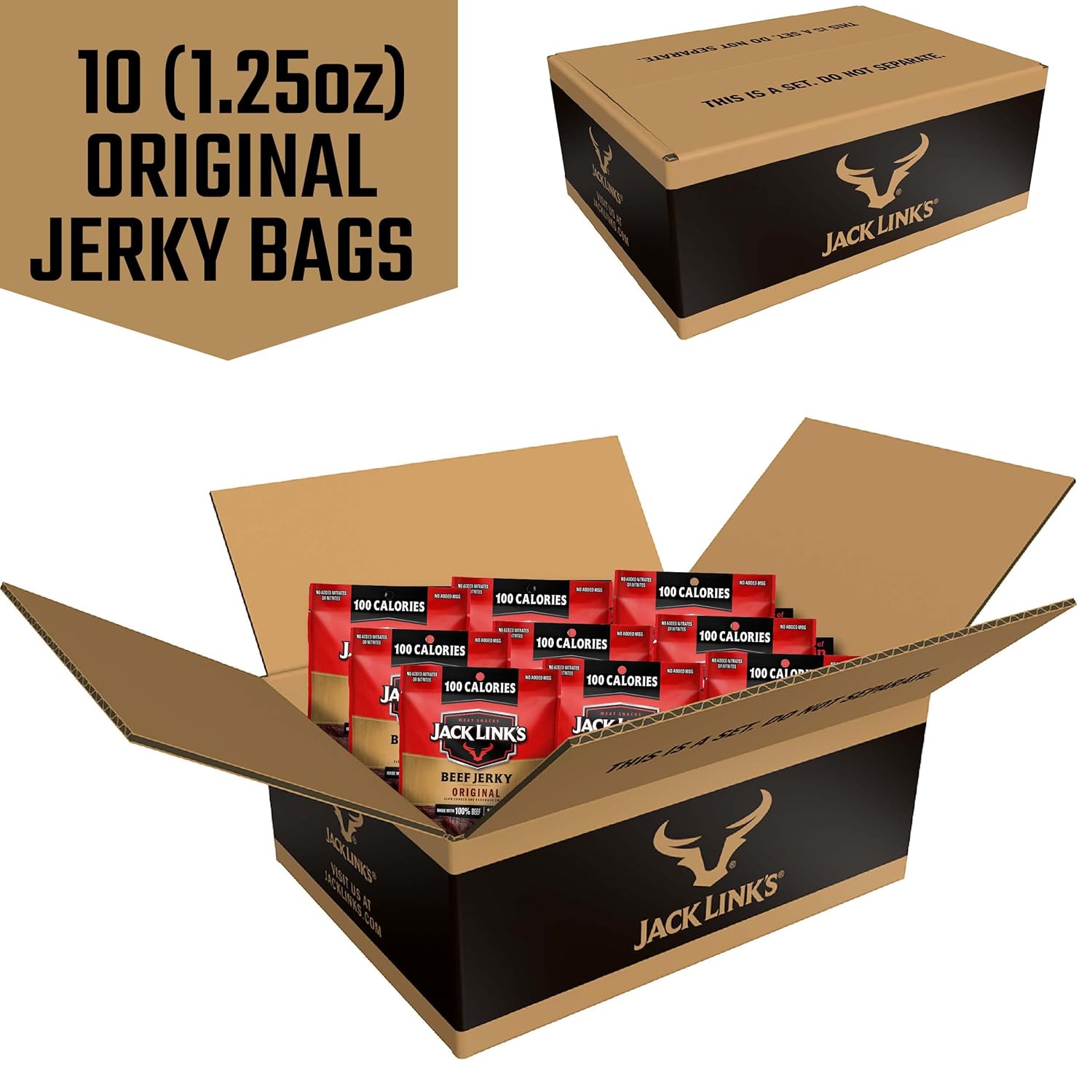 Jack Link’s Beef Jerky, Original – Flavorful Meat Snack for Lunches, 13g Protein and 100 Calories, Made with 100% Beef – No Added MSG or Nitrates/Nitrites, 1.25 oz (Pack of 10)