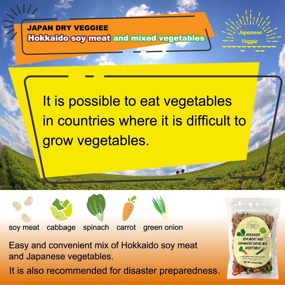 Japanese Veggie Hokkaido soy meat and Japanese dried mix vegetable 3.53 oz (100g)